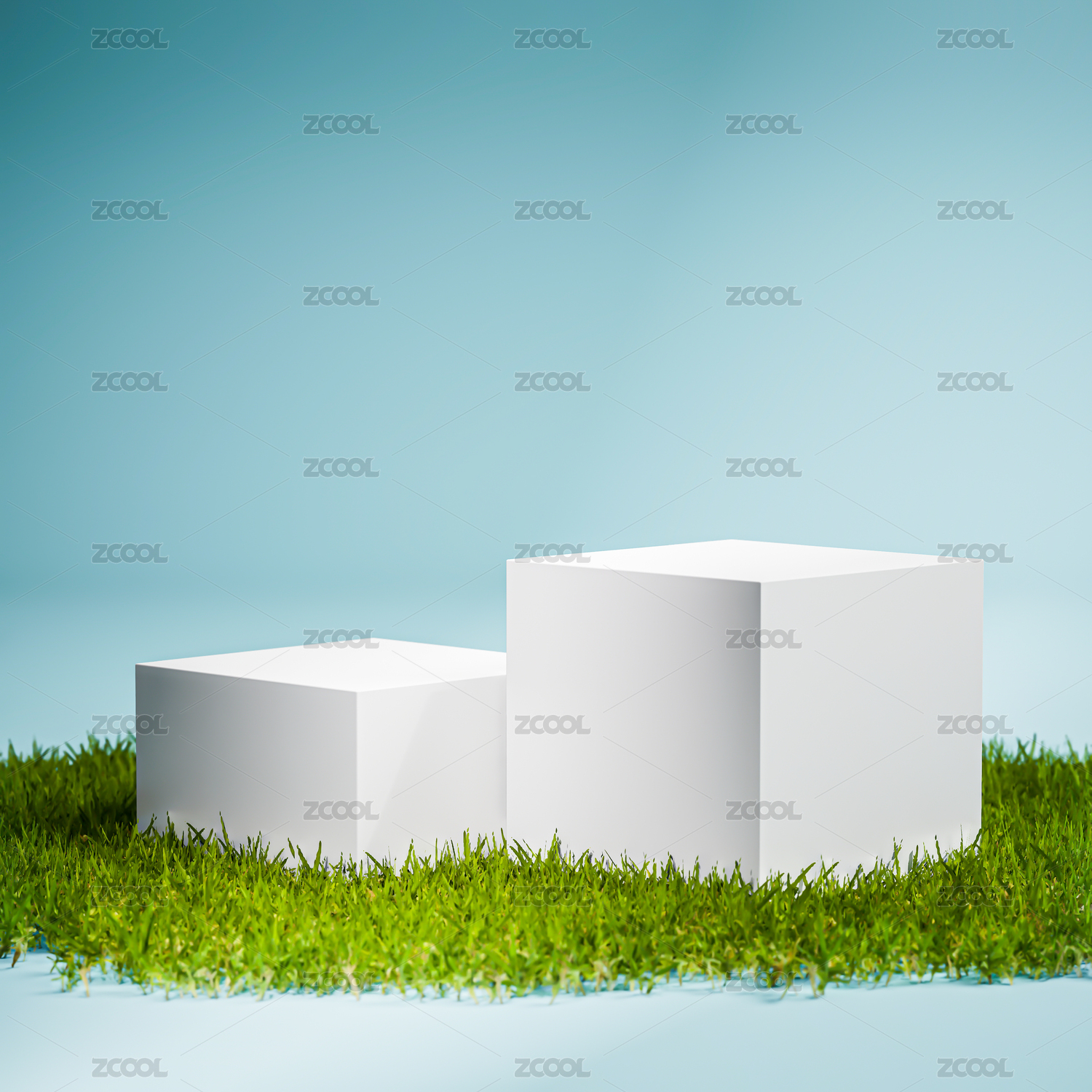3D绿色草植物石头清新森系产品展台背景