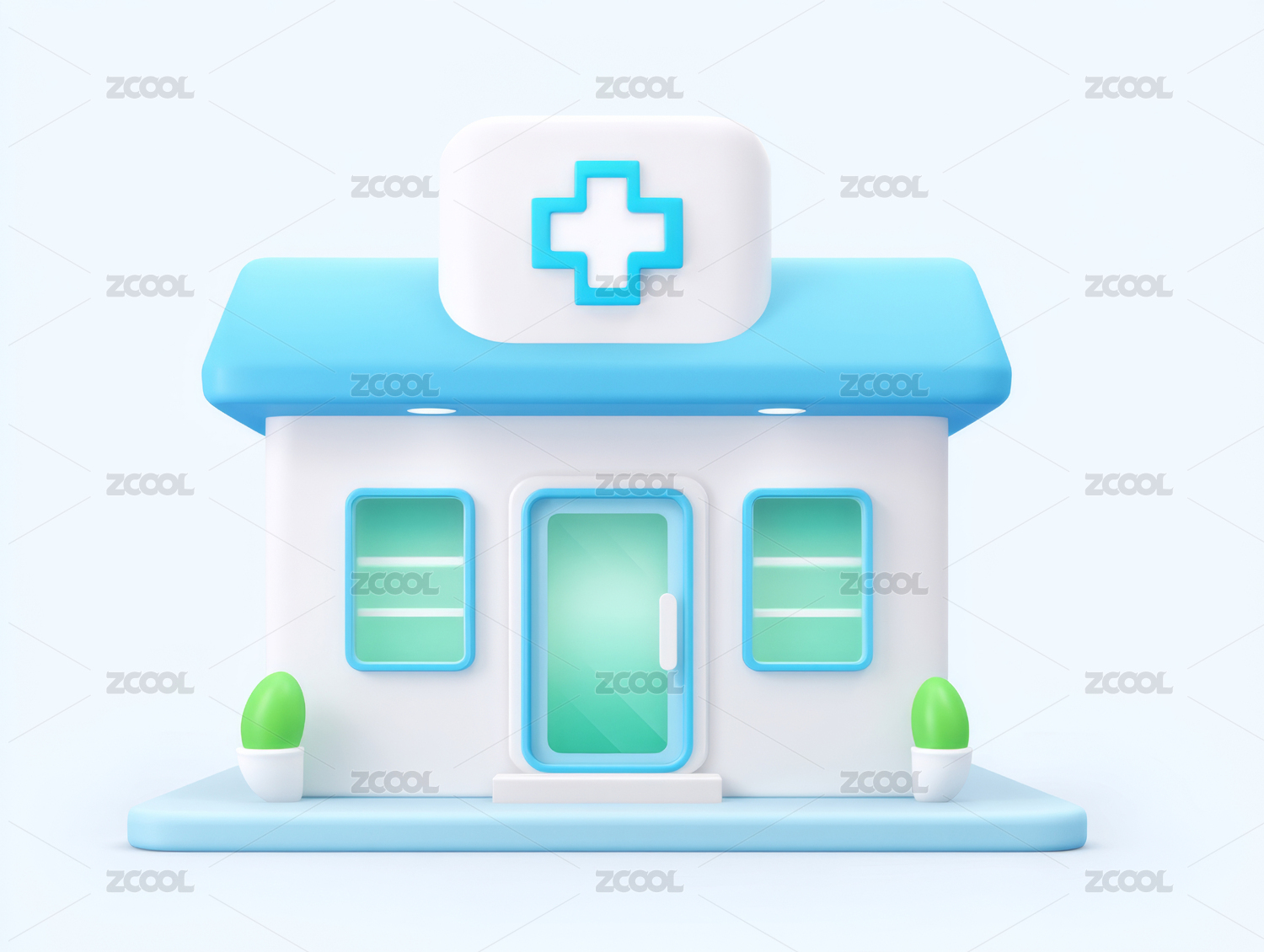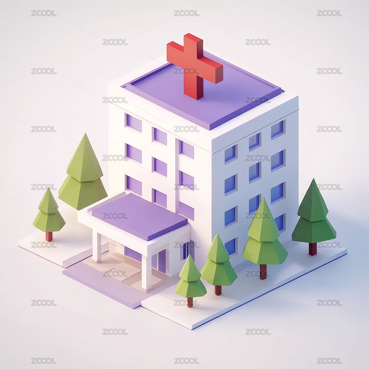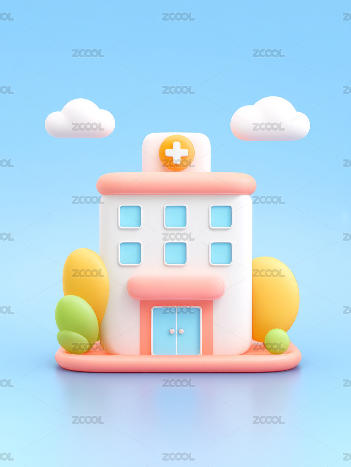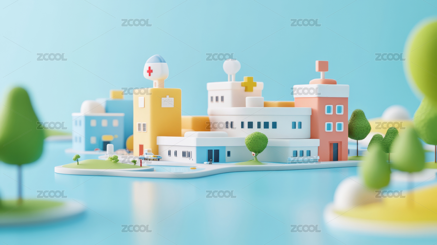 卡通,城市,医院,建筑,树木,云朵,爱心,pastel,迷你,模型