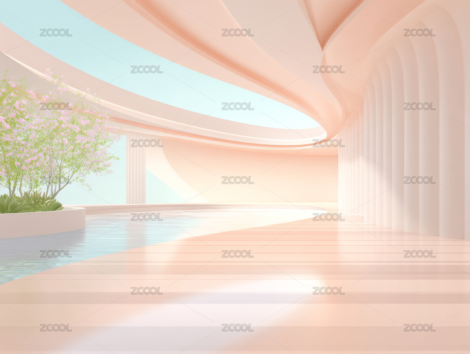 现代,建筑,樱花树,蓝天,白色,结构,曲线,设计,简洁,风格