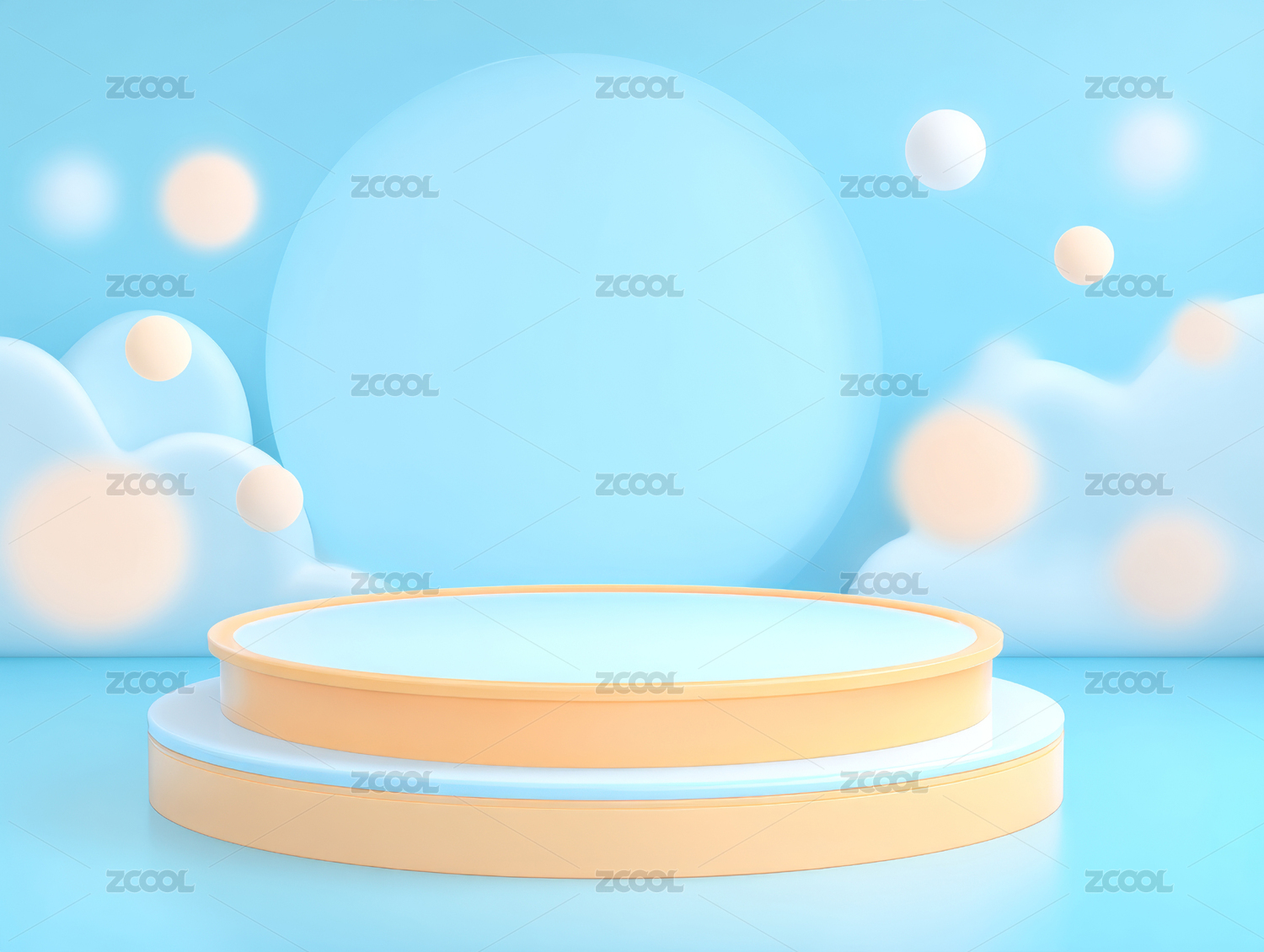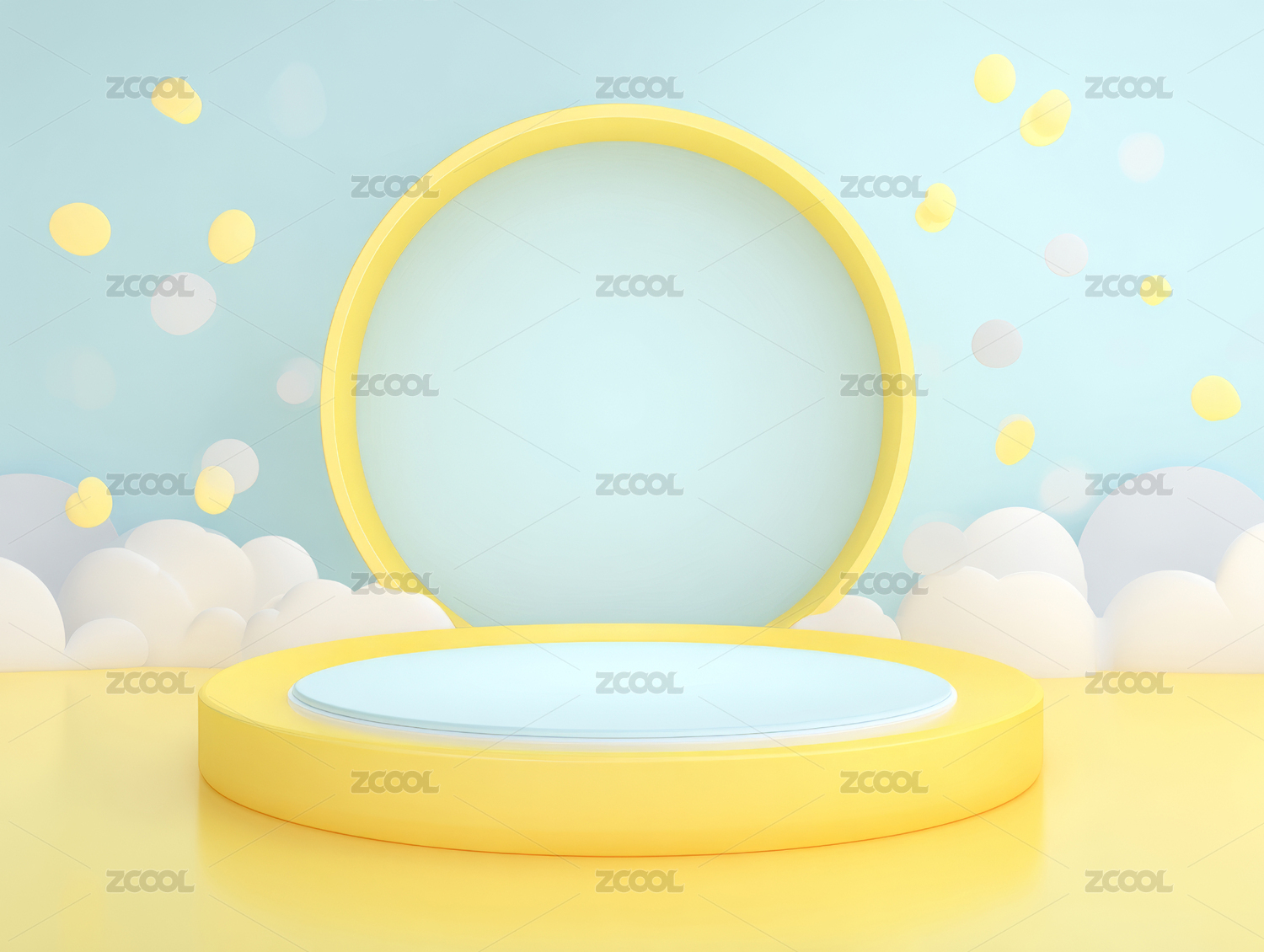 云朵,舞台,蓝色,黄色,圆形,背景,简洁,气球,天空,设计
