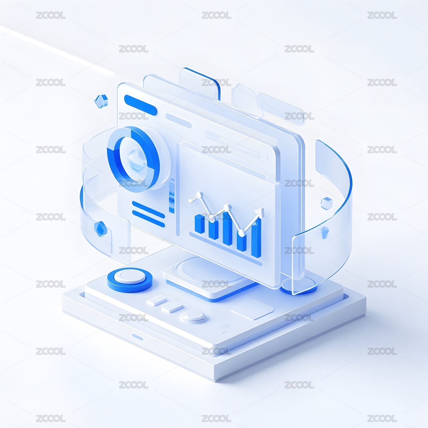 蓝色,科技,3D,立体,等距,半透明,数据,图表,分析,柱状图