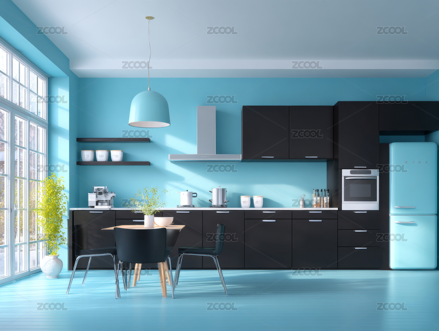 抽油烟机冰箱家用厨房室内装饰家居风格背景