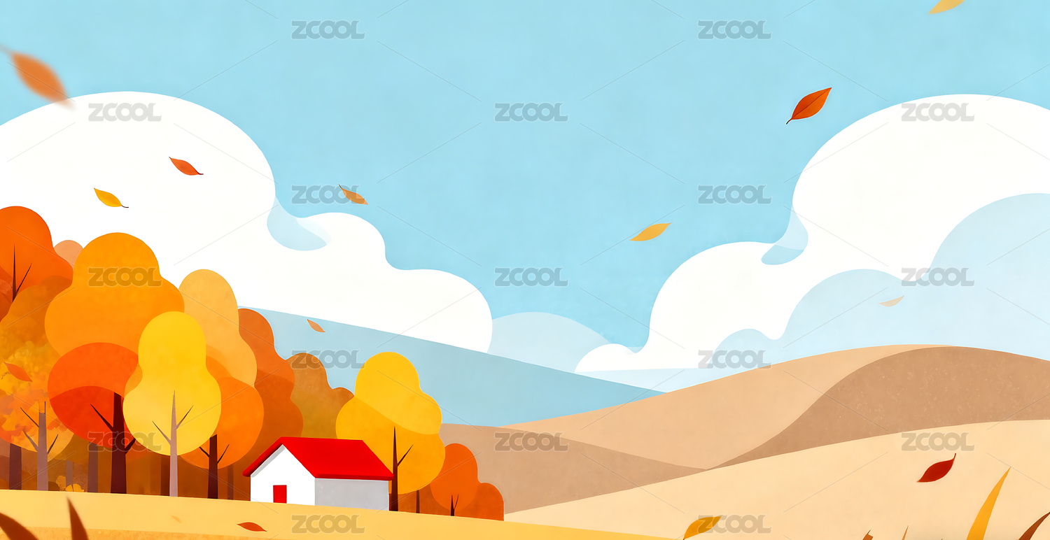 秋天自然户外风景扁平风格插画背景壁纸