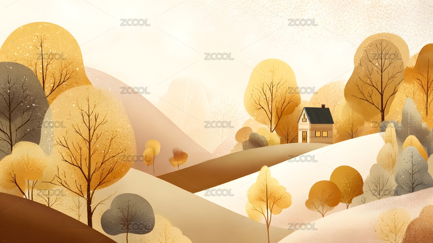 3D秋天自然户外风景插画背景壁纸