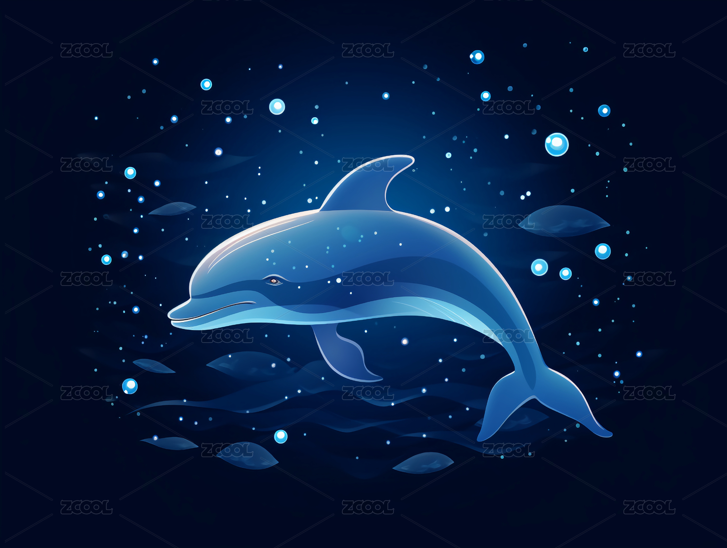 海豚,动物,蓝色,水花,跃动,艺术,插画,活力,水中,生物