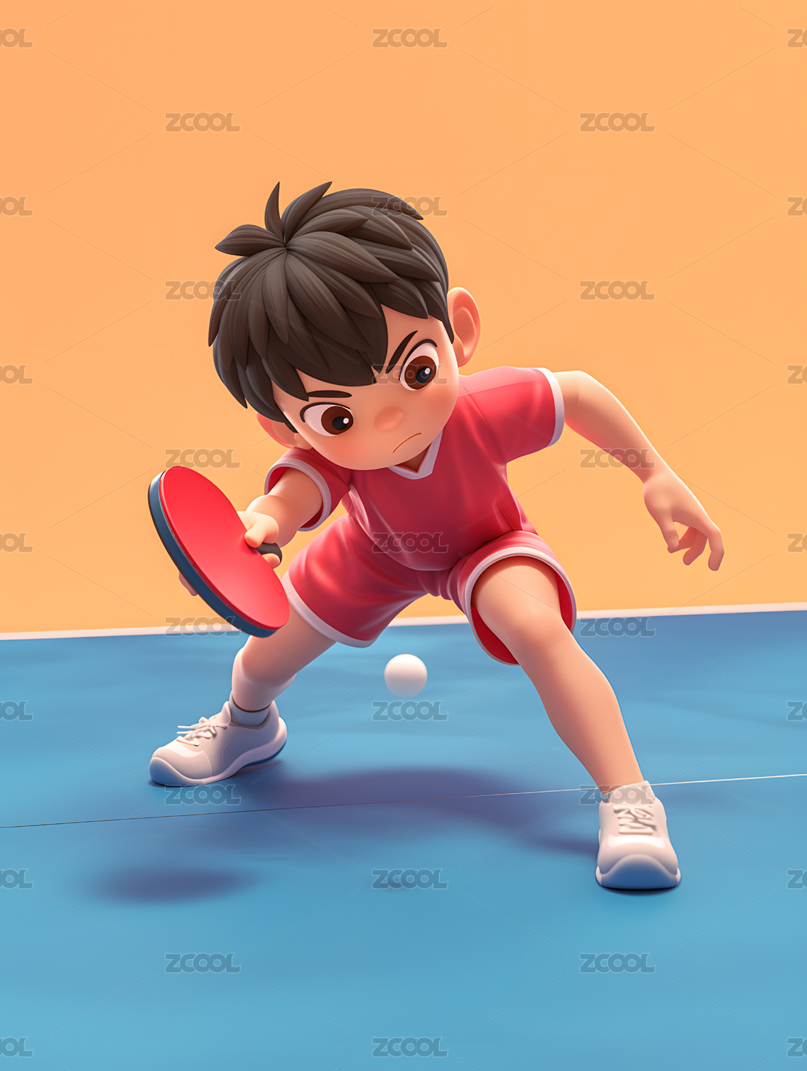 穿蓝色运动服打乒乓球的3D卡通男运动员