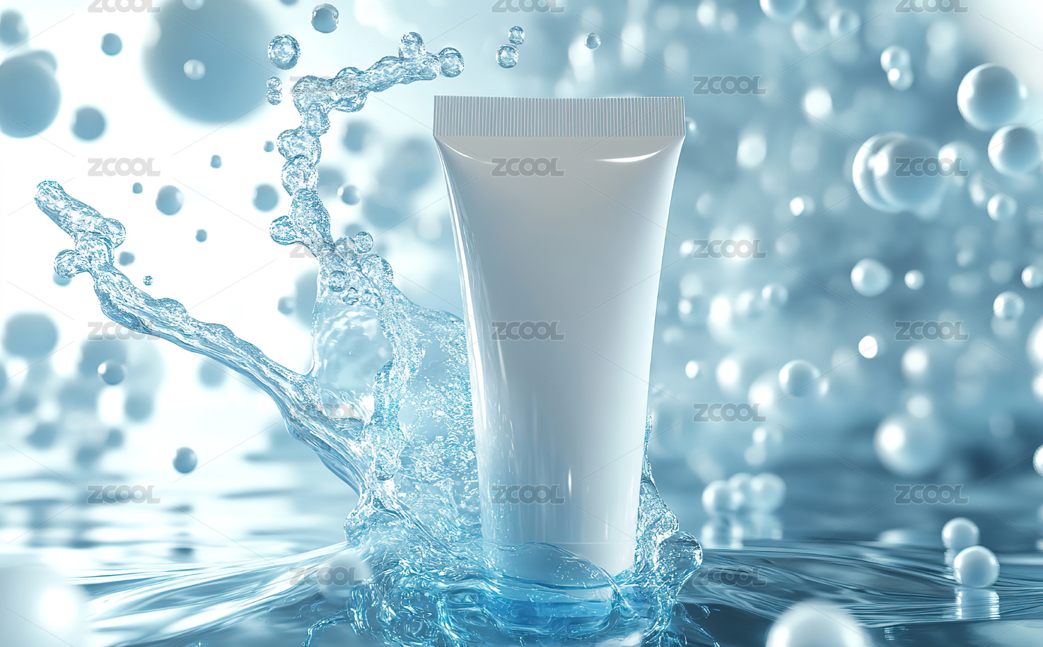 洗面奶在蓝色的气泡里,化妆品概念场景元素