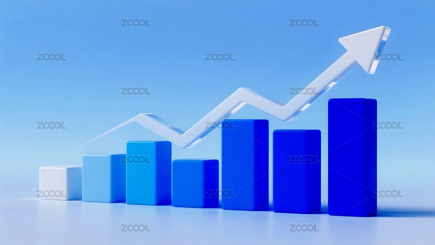 蓝色渐变玻璃质感金融柱状图增长箭头背景