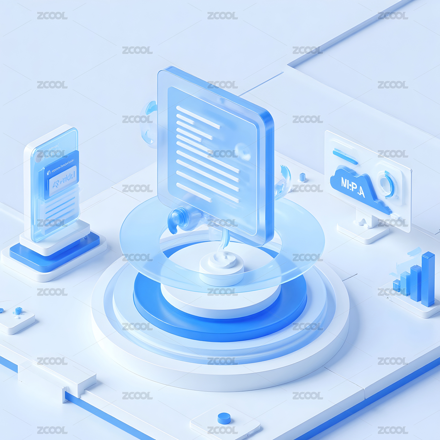 蓝色系 3D 信息交互图标模型展示
