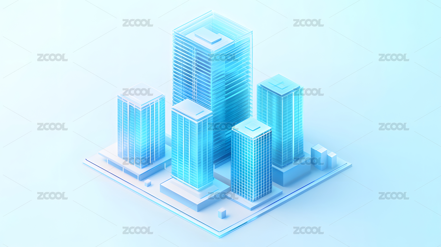 磨砂玻璃质感的未来城市3d模型