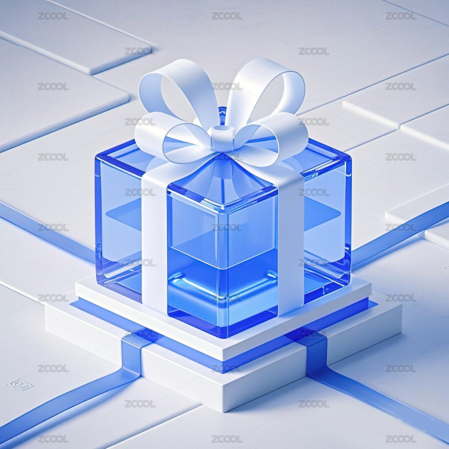 主视觉,礼盒,科技感,创意,展示,场景,蓝色,立体,礼物,透明