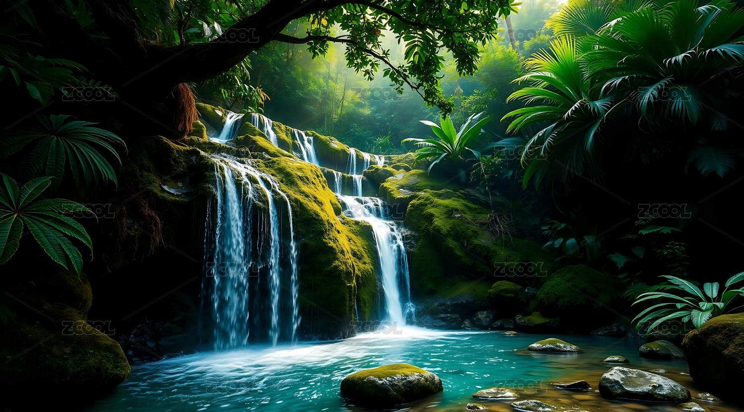 翠谷幽潭碧波轻拂绿意盎然自然之韵
