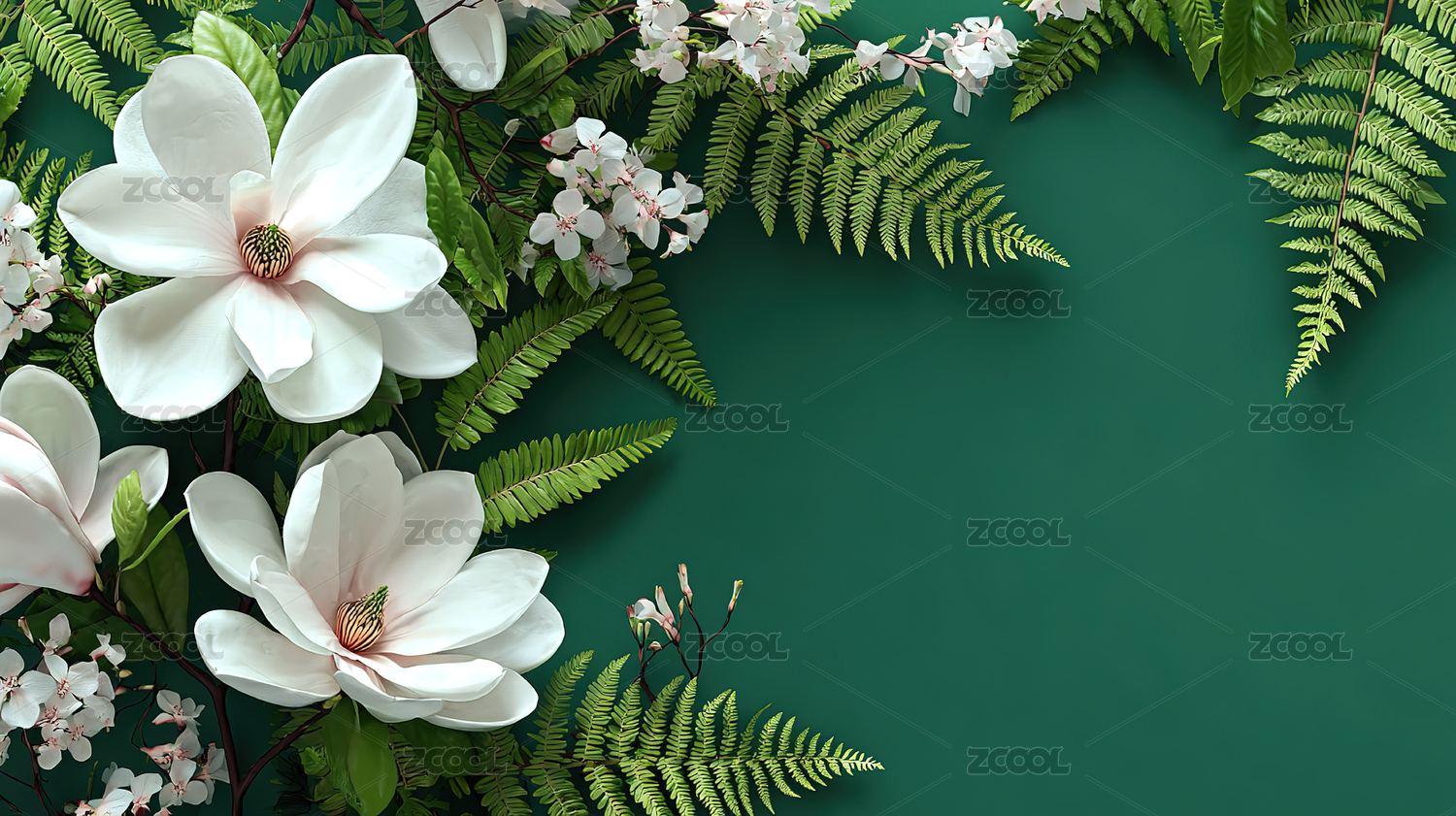 背景,青绿,木兰,蕨类,叶片,边缘,装饰,布局,平面,构图