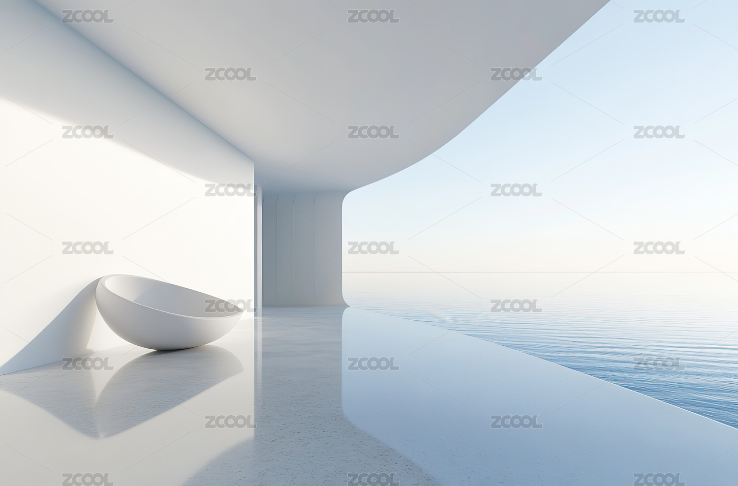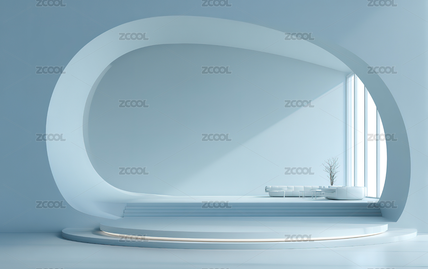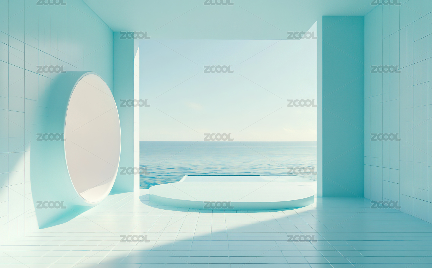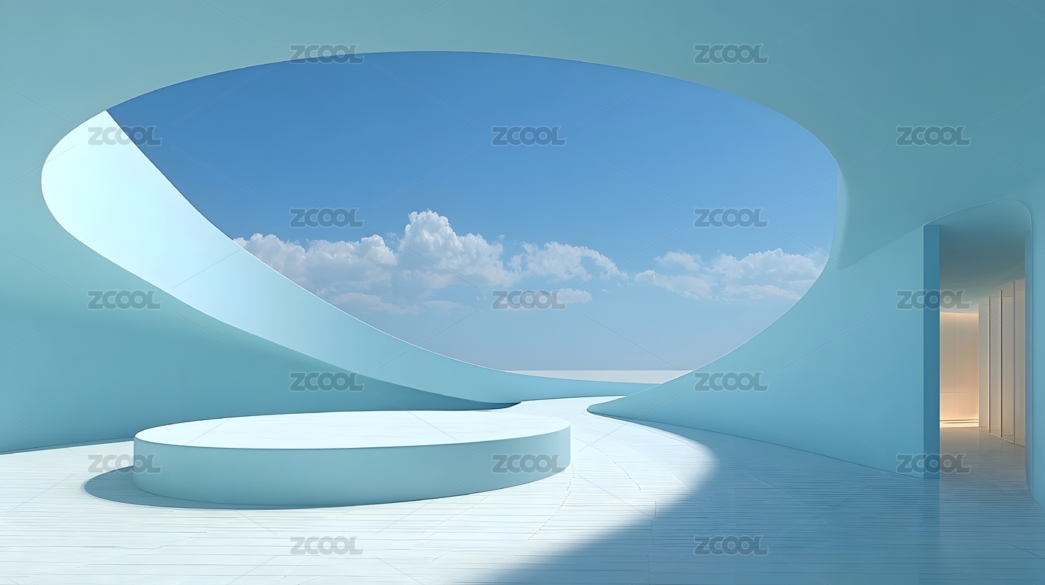 极简,室内,设计,天蓝,窗户,阳光,几何,平台,圆形,空间
