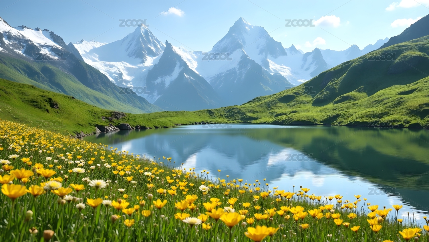 四川甘孜藏族自治州夏天草原山水雪山自然风