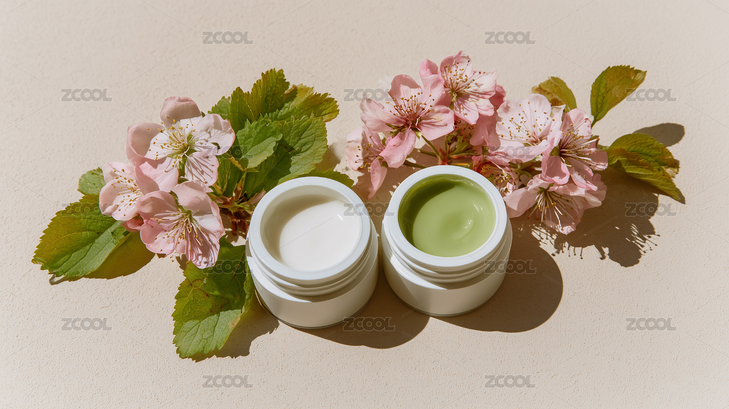 面霜,罐子,白色,绿色,玫瑰,蕨叶,桌面,背景,布置,静物