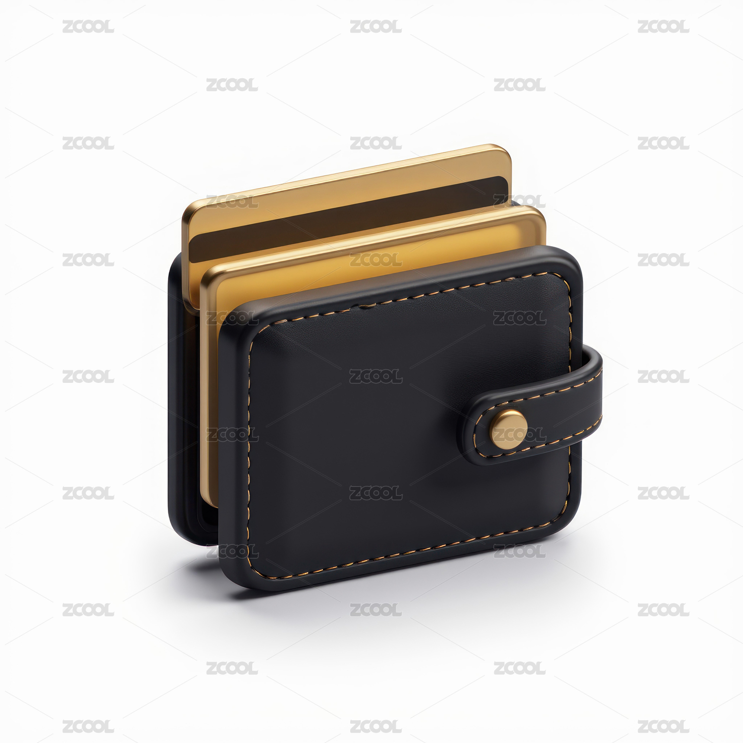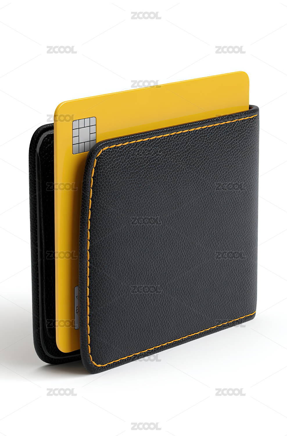 黑色皮质卡包与黄色卡片