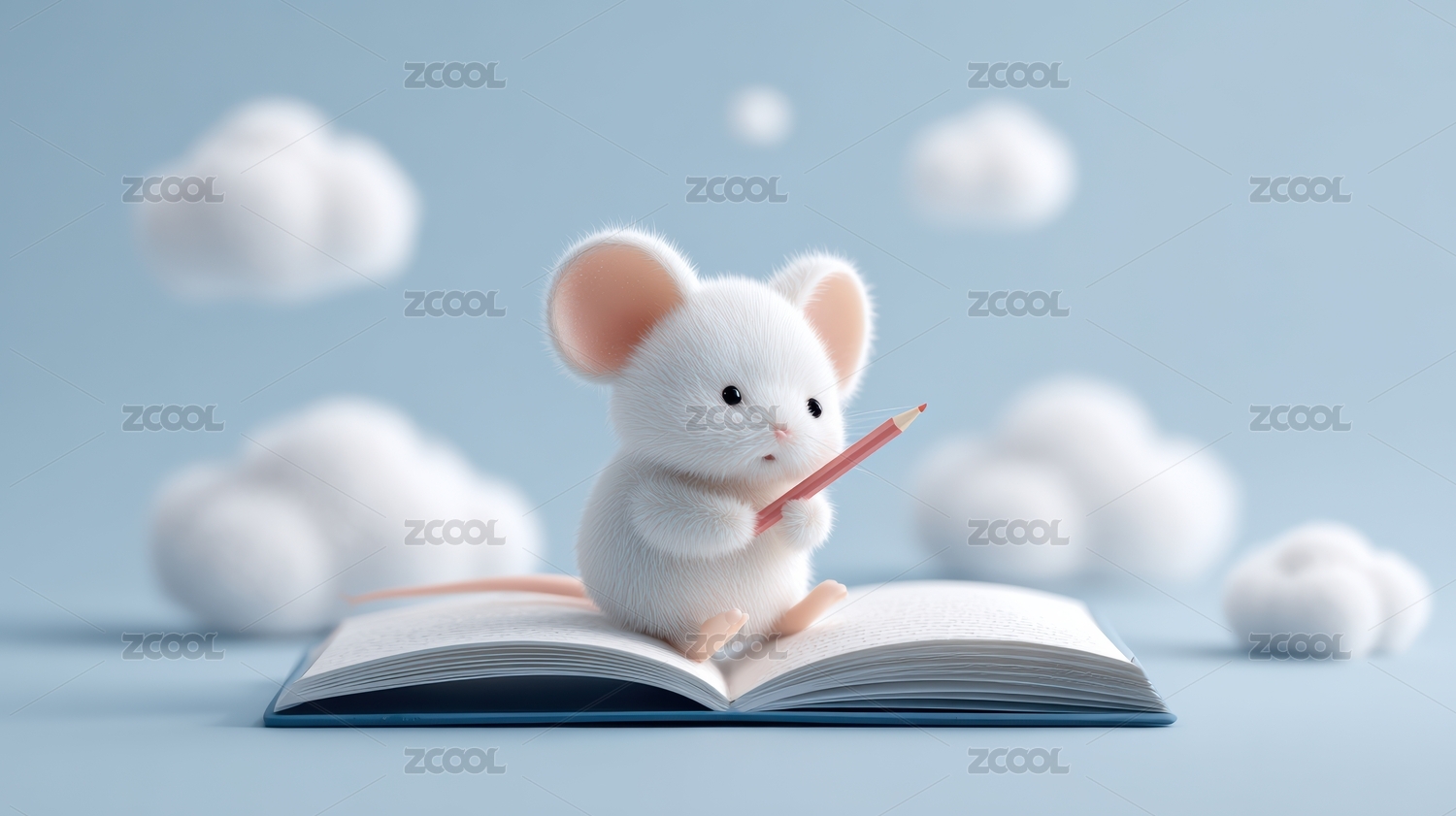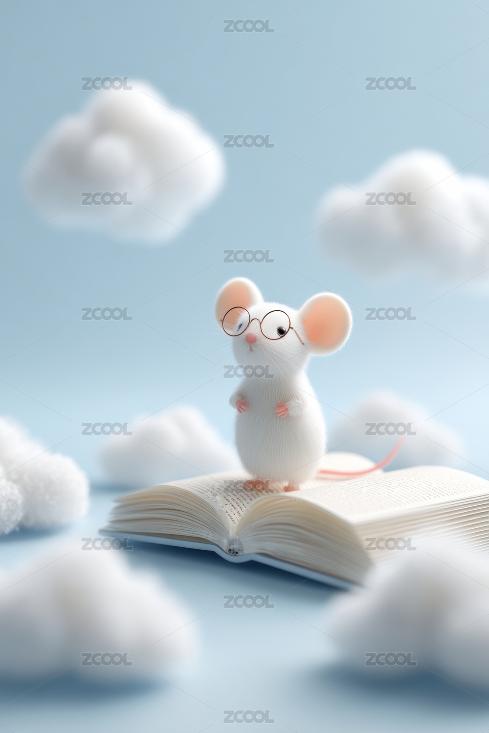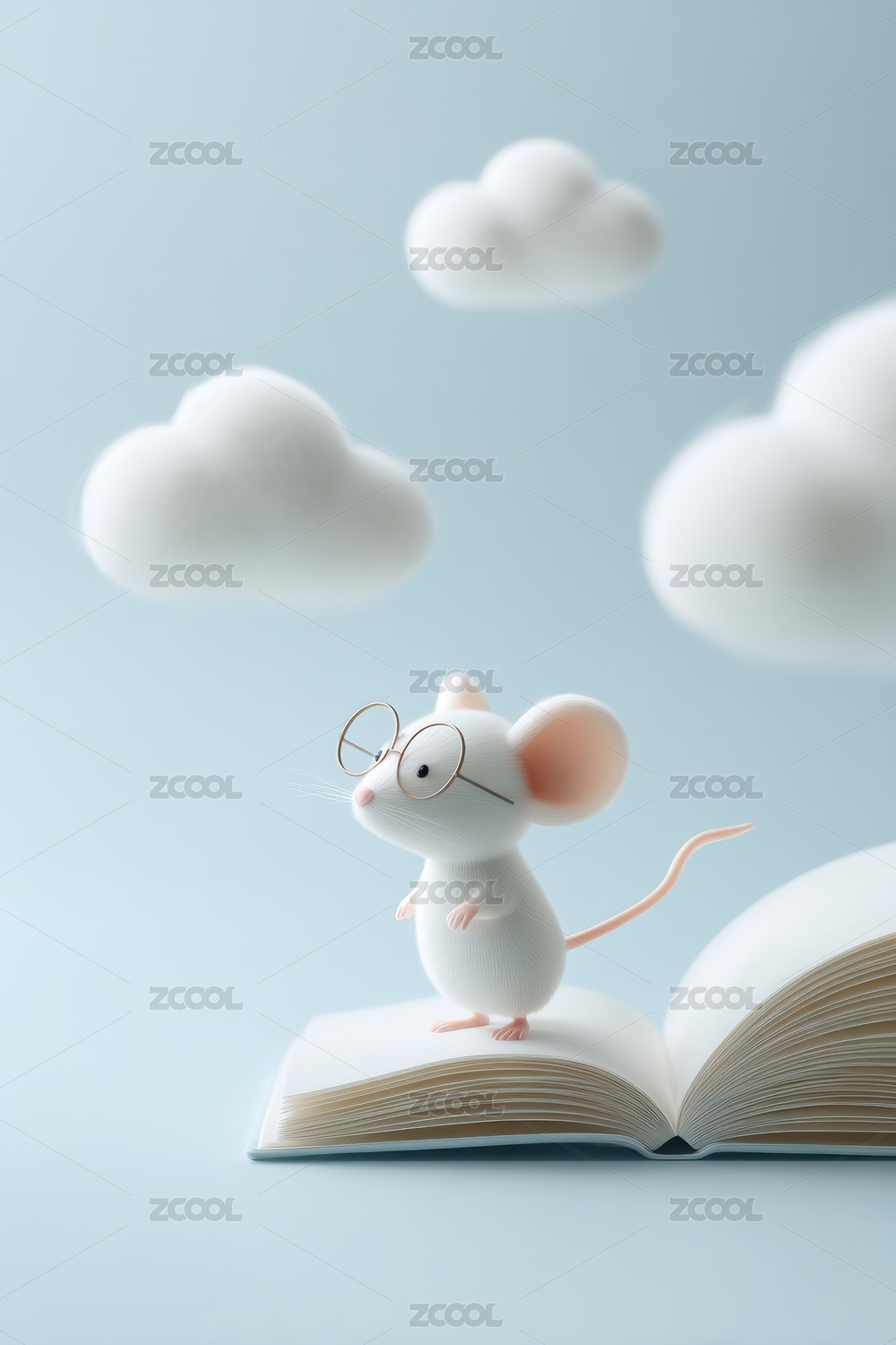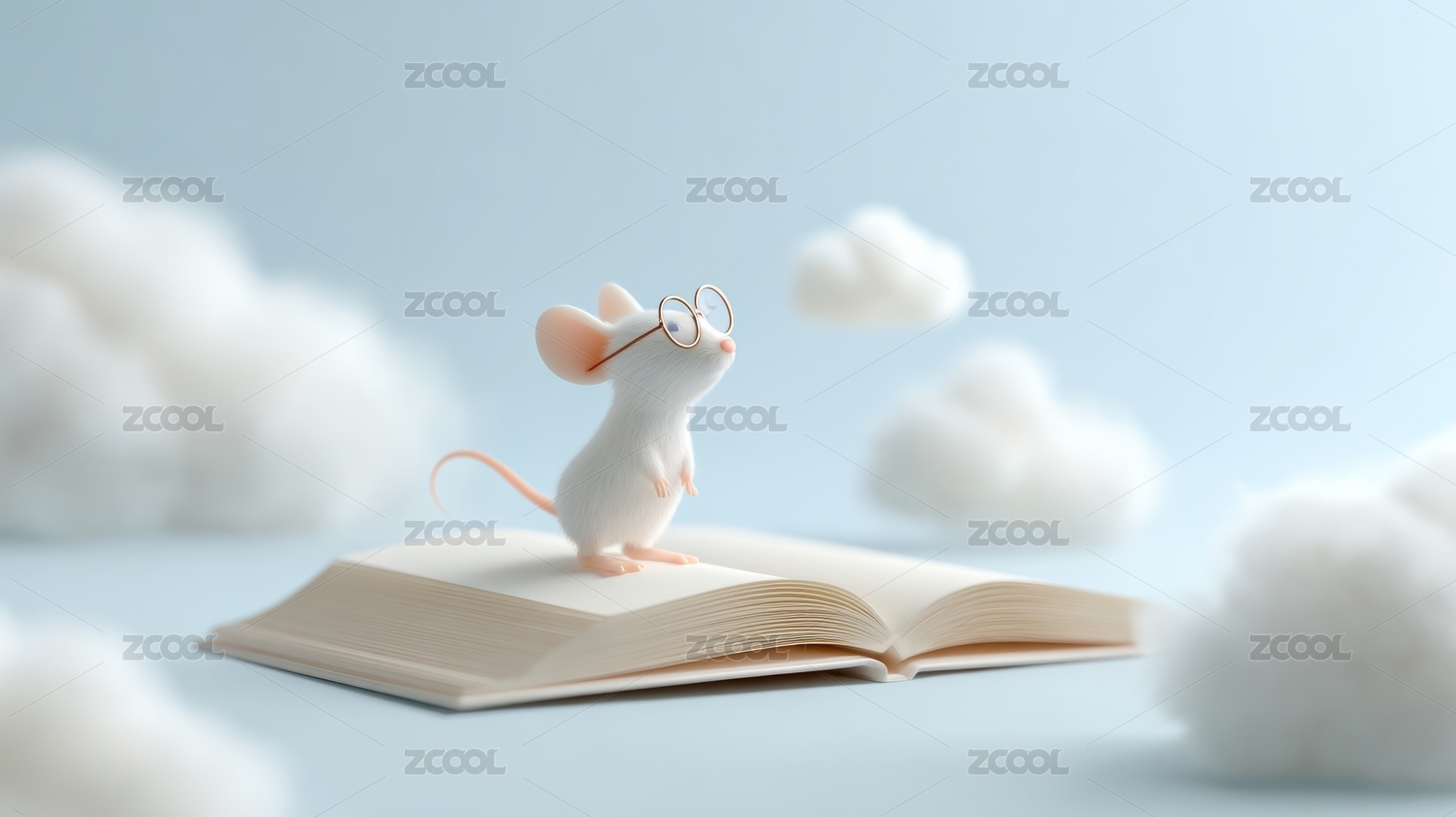 蓝色,梦幻,背景,创意,云朵,插画,白色,小老鼠,书本,云端