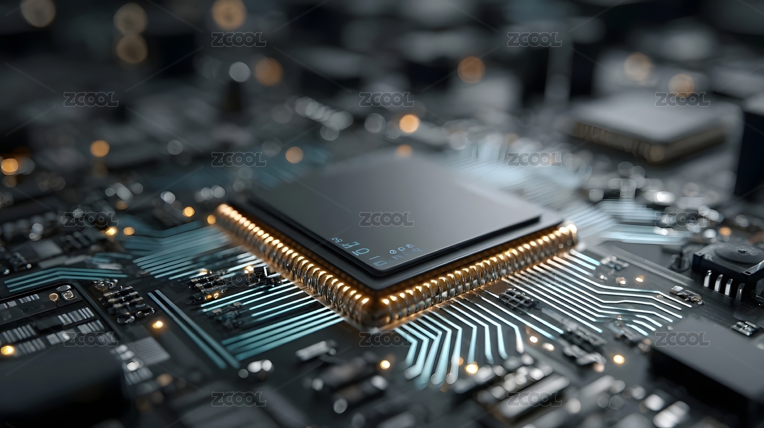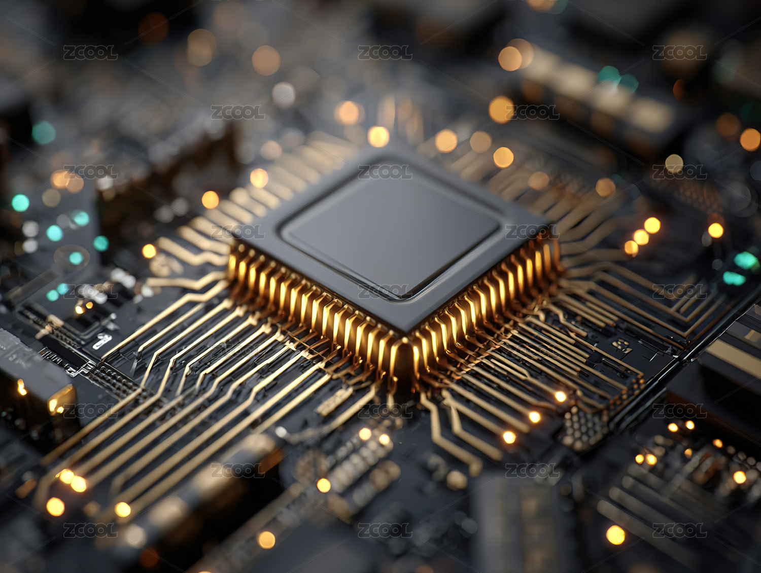 微处理器,电路板,半导体,电子元件,集成电路,金色线路,科技感,精密制造,硬件设备,现代科技