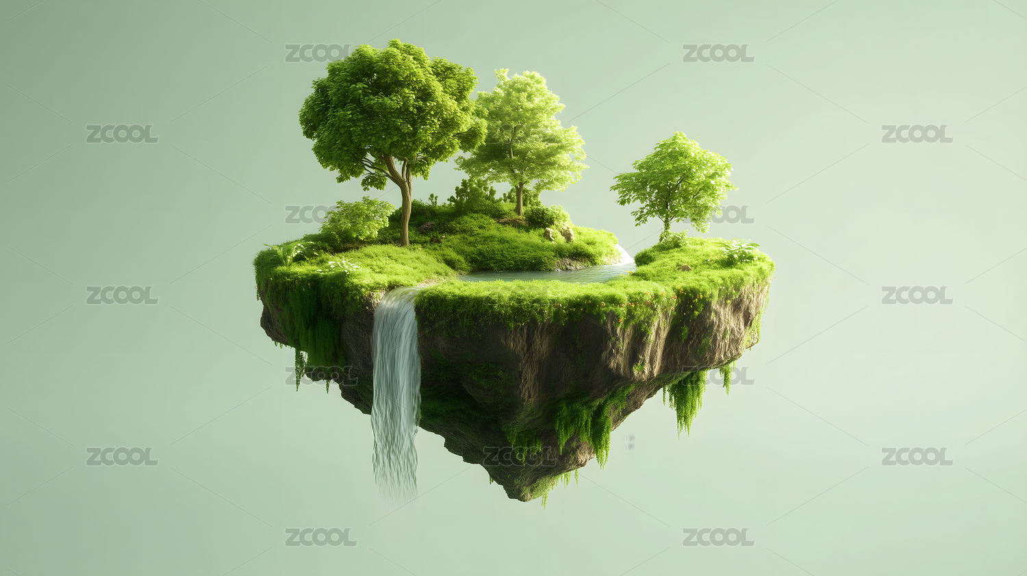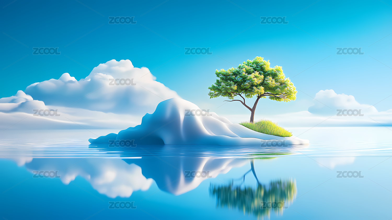 孤岛,岩石,苔藓,绿植,莲花,荷叶,水面,倒影,宁静,自然