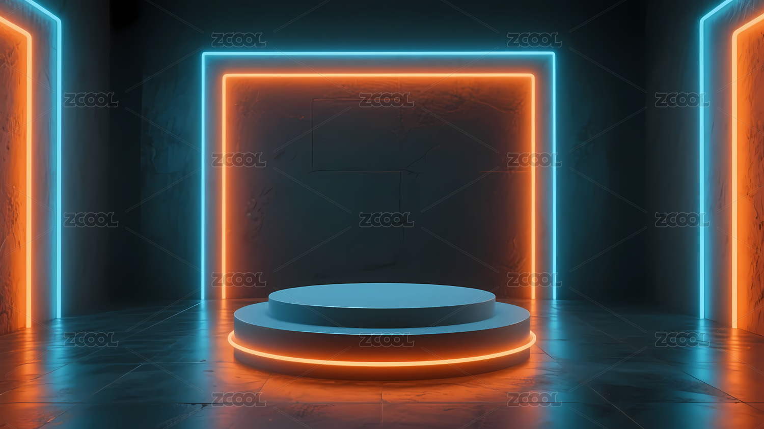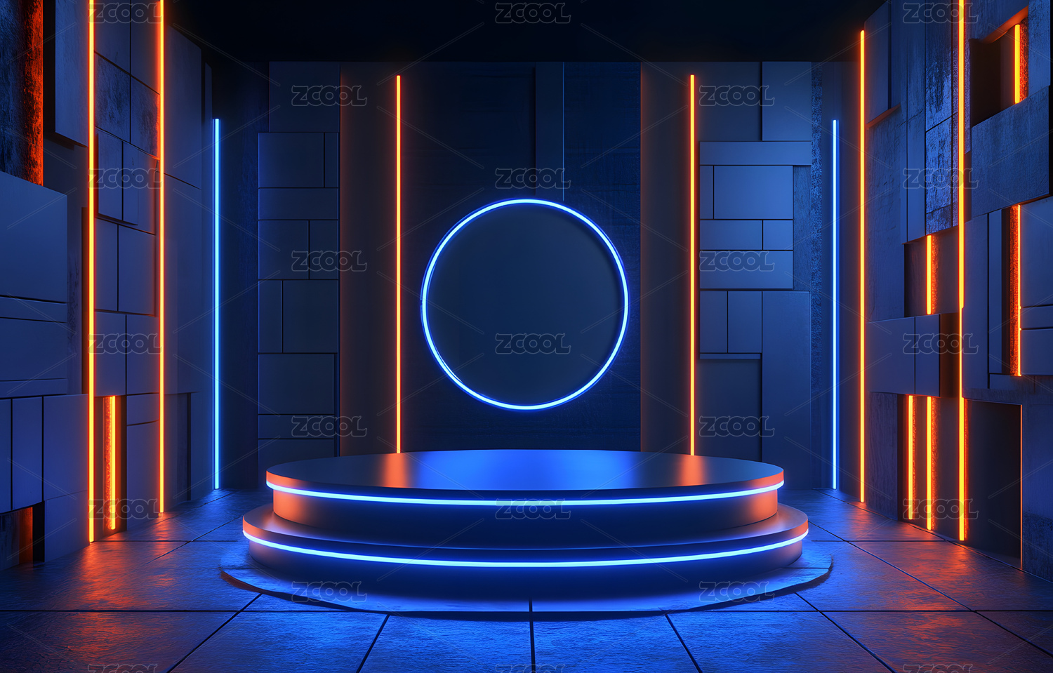 炫彩,夺目,深蓝,背景,光线,强烈,对比,色调,圆形,舞台