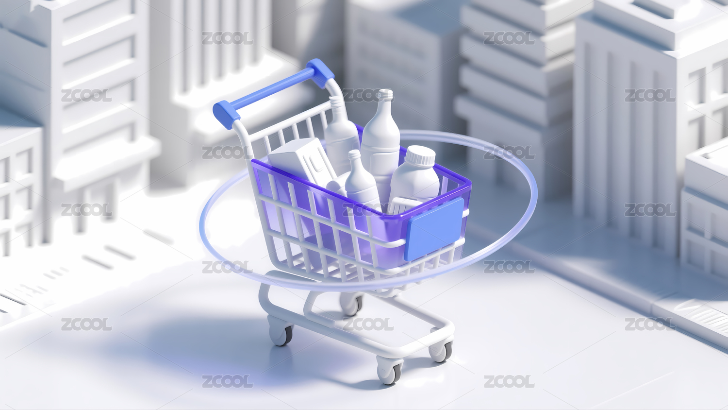 互联网,3D,科技,智能,未来,超现实,图标,购物,小车,日用品