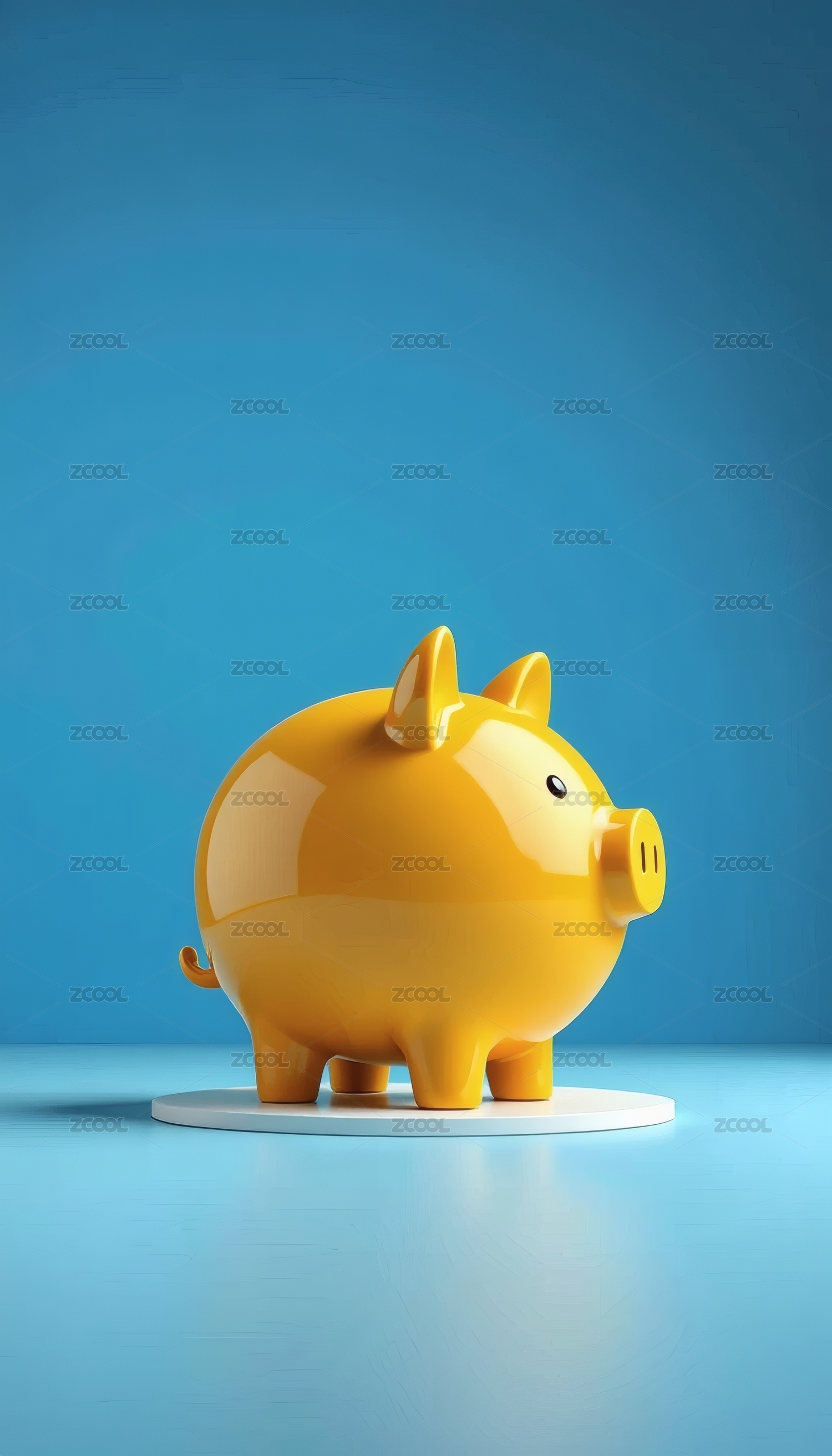 黄色小猪存钱罐置于浅蓝色背景