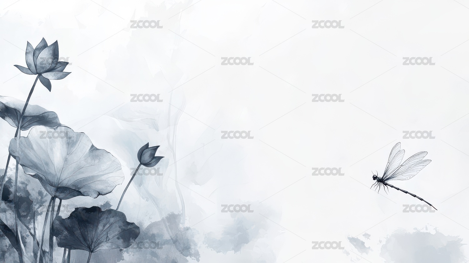 黑白色调莲花蜻蜓图