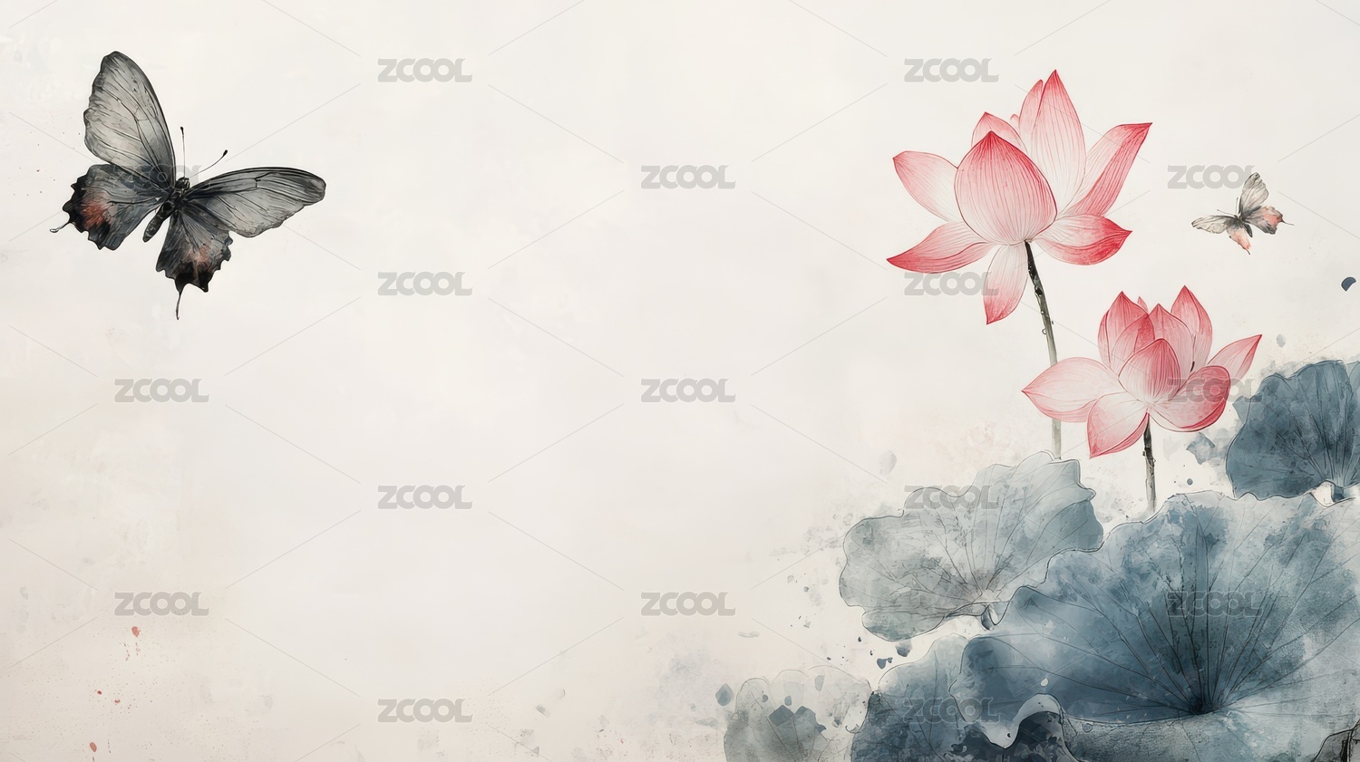 水墨蝴蝶与莲花的唯美画卷