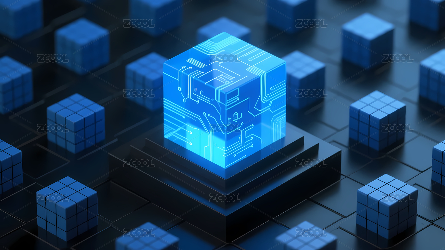 蓝色,科技,背景,商务,主视觉,渐变,光影,三维,空间,人工智能