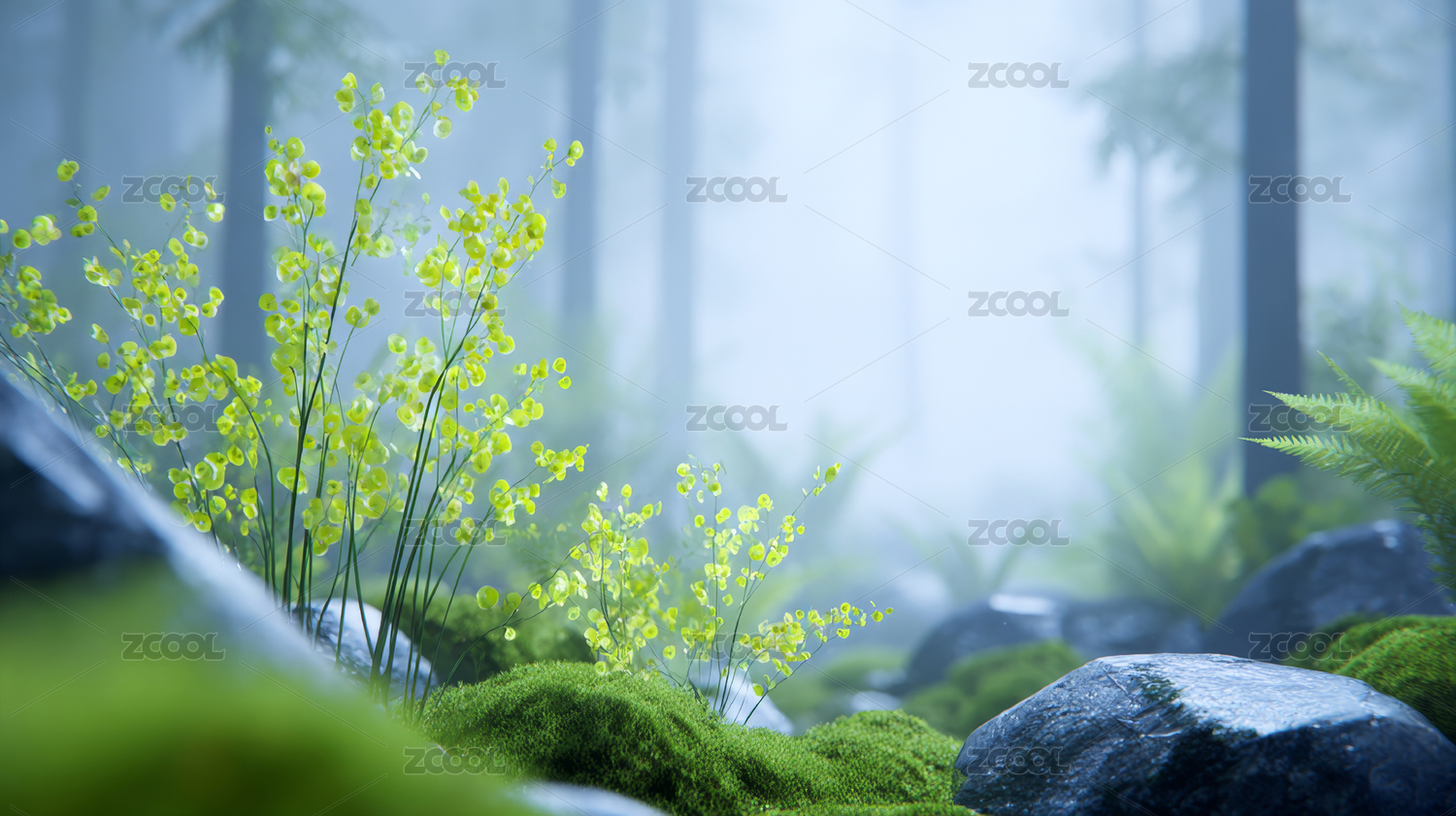 森林,雾气,植物,岩石,绿色,自然,溪流,苔藓,宁静,晨光