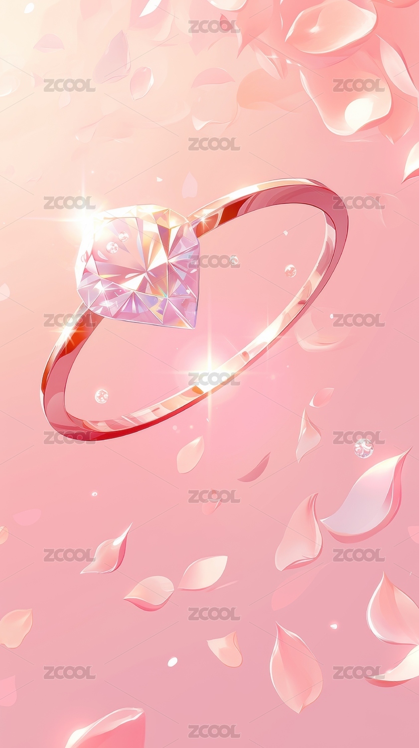 钻戒闪耀粉红丝绒映衬下的璀璨光芒