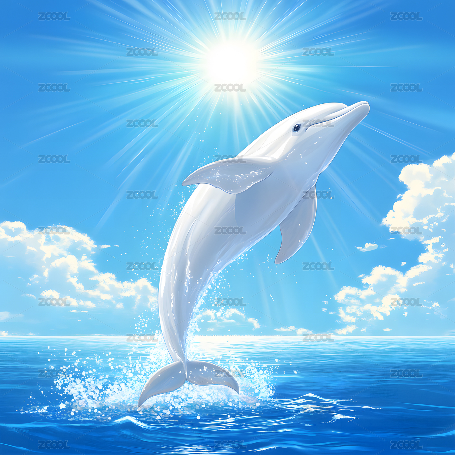 海豚跃出碧波闪耀阳光