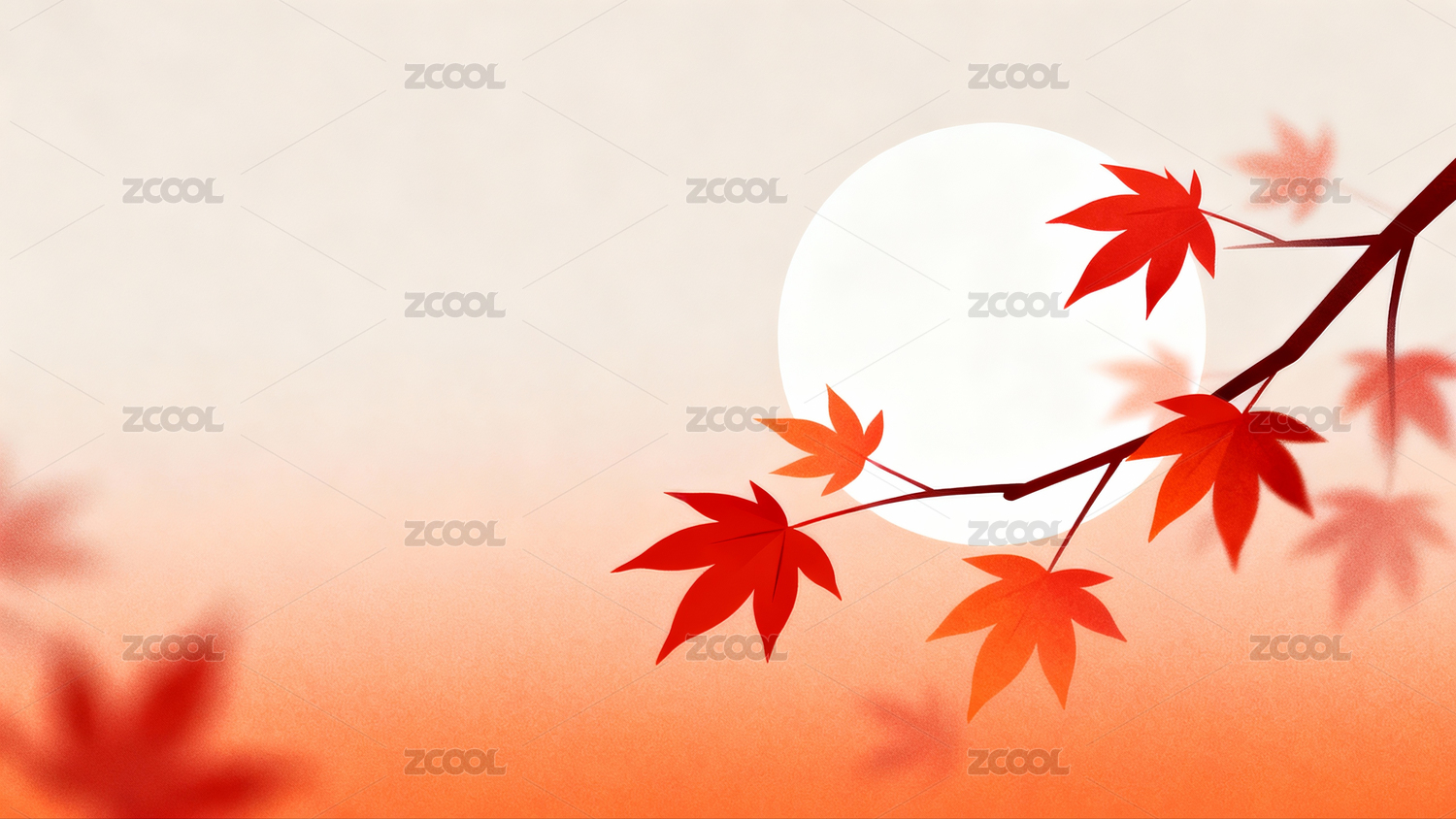 抽象,艺术,自然,风景,宁静,橙色,水墨画,秋季,树枝,月亮