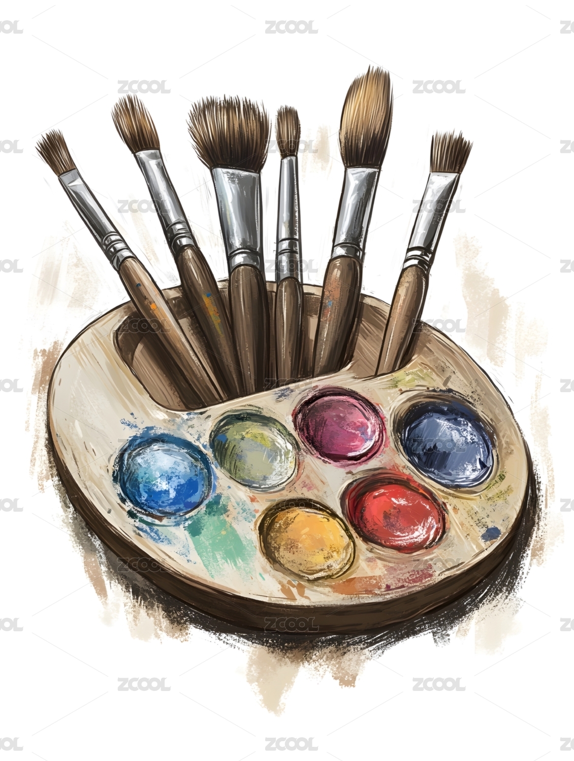 颜料笔刷卡通插画