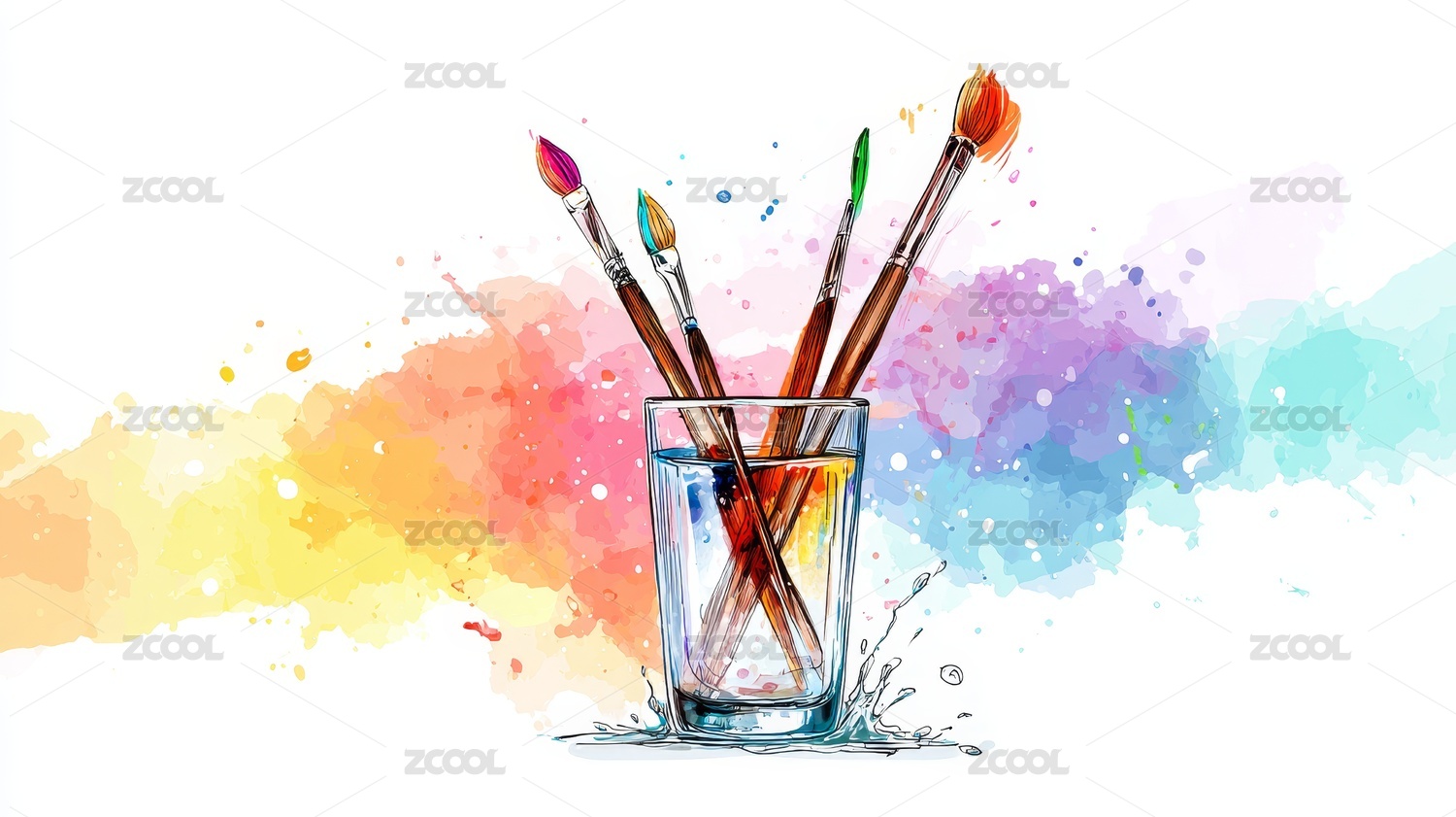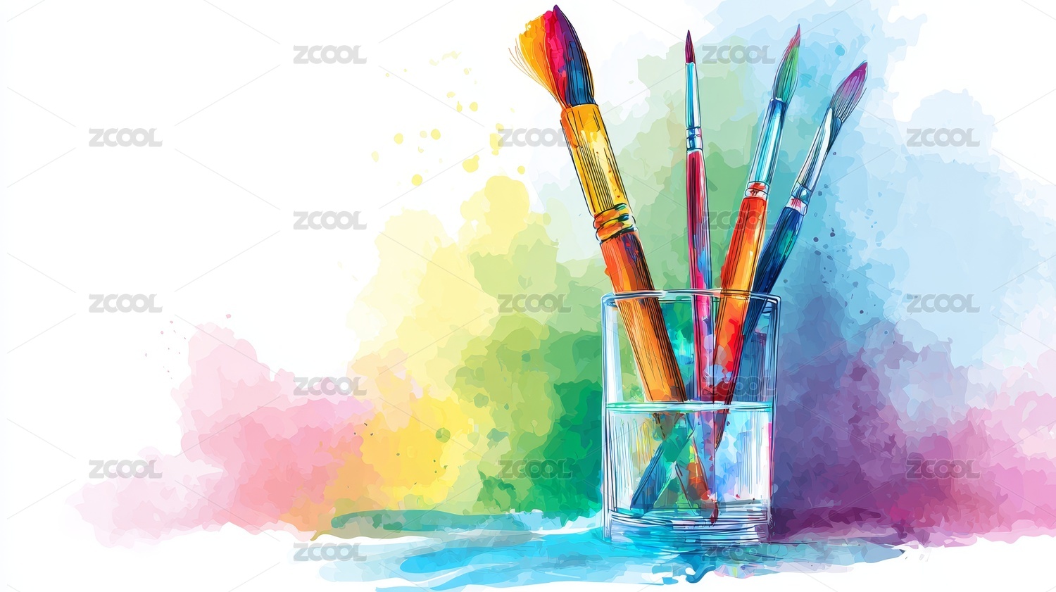 水彩画笔在容器中绽放