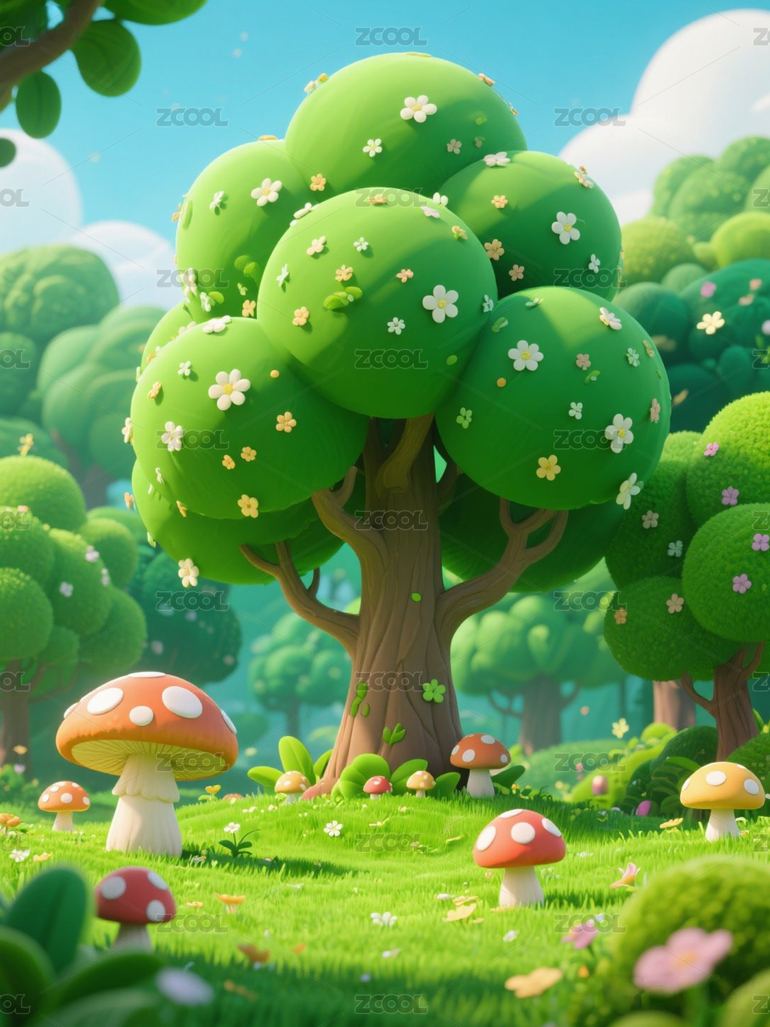 3D渲染卡通树