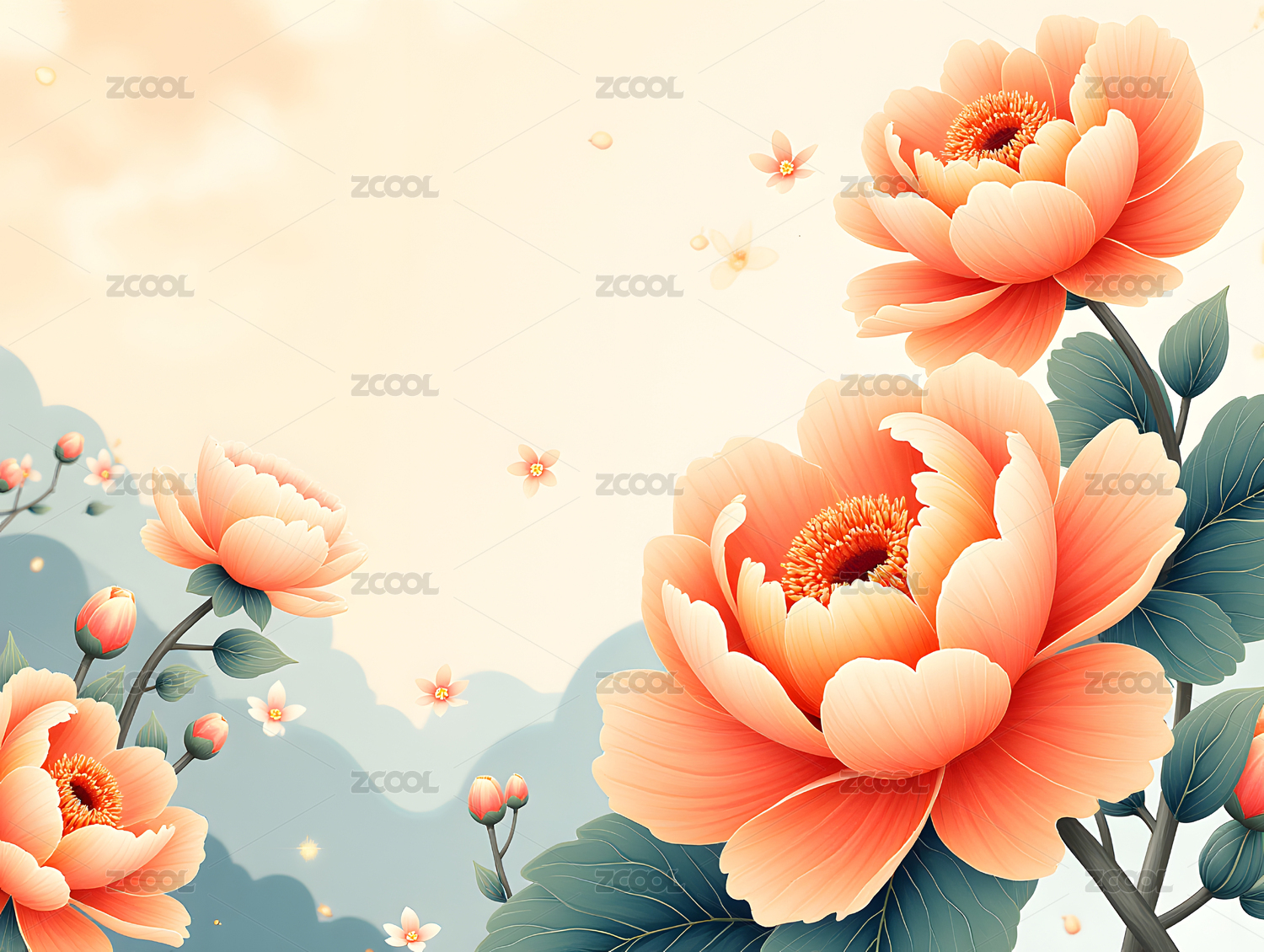 牡丹,花朵,绘画,装饰,布局,传统,艺术,精致,图案,写实