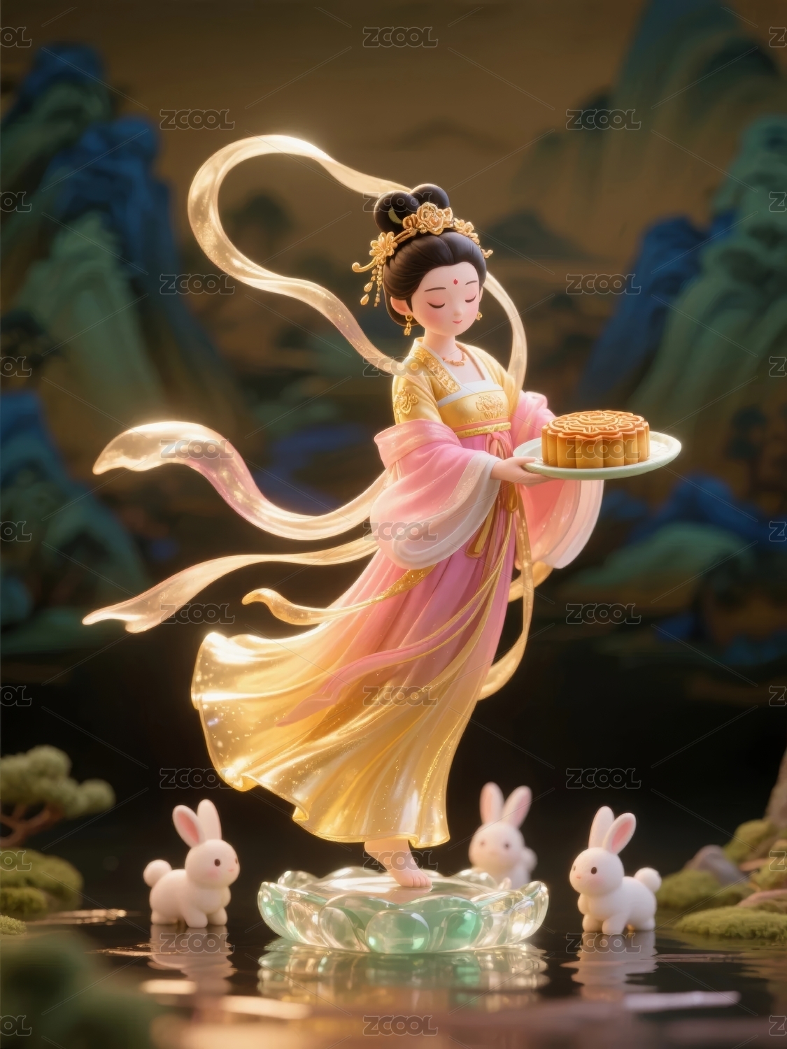 中秋节,嫦娥,玉兔,节日,传统,神话,仙女,可爱,古风,国风