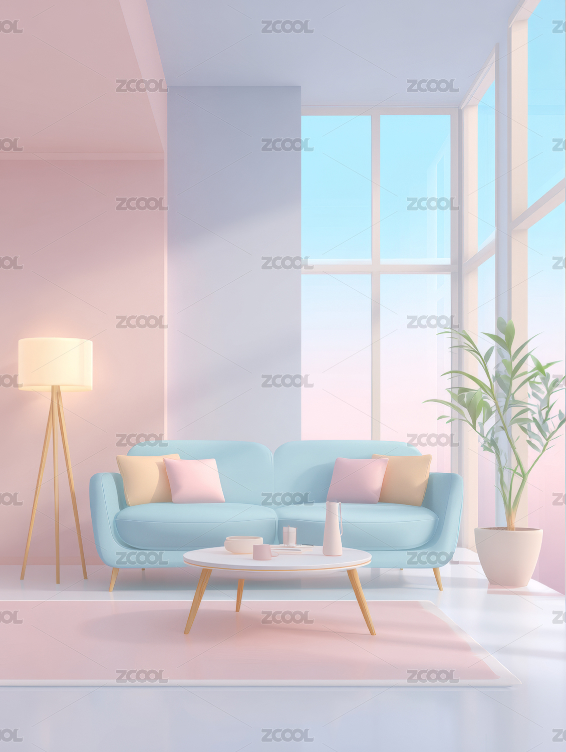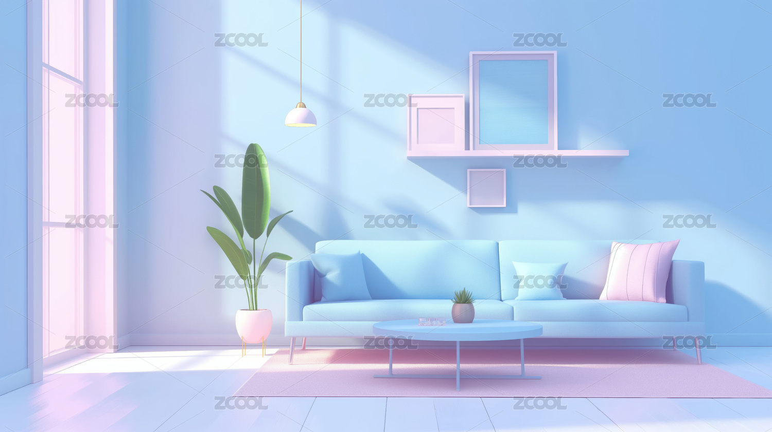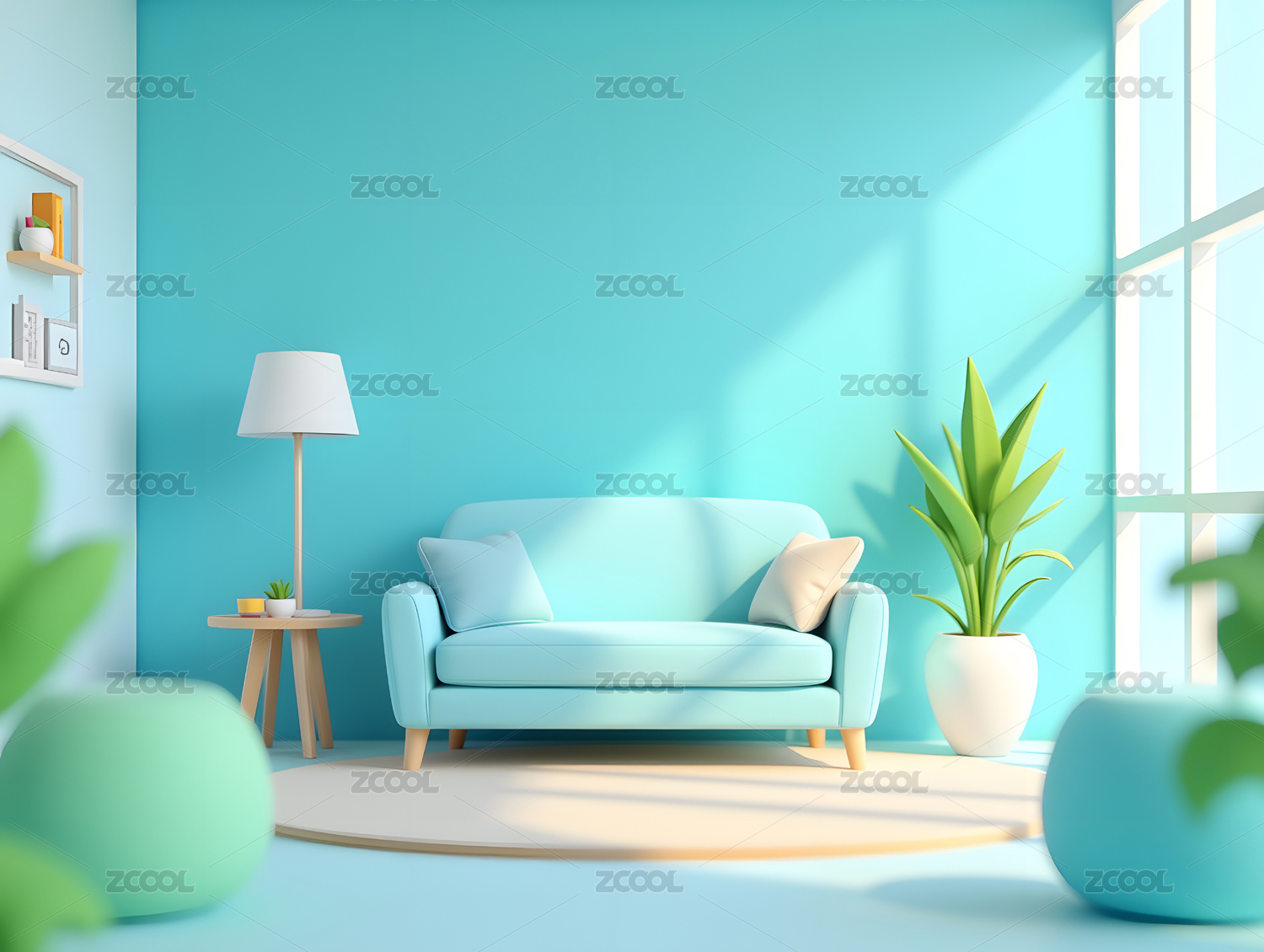 3d卡通风格的客厅环境