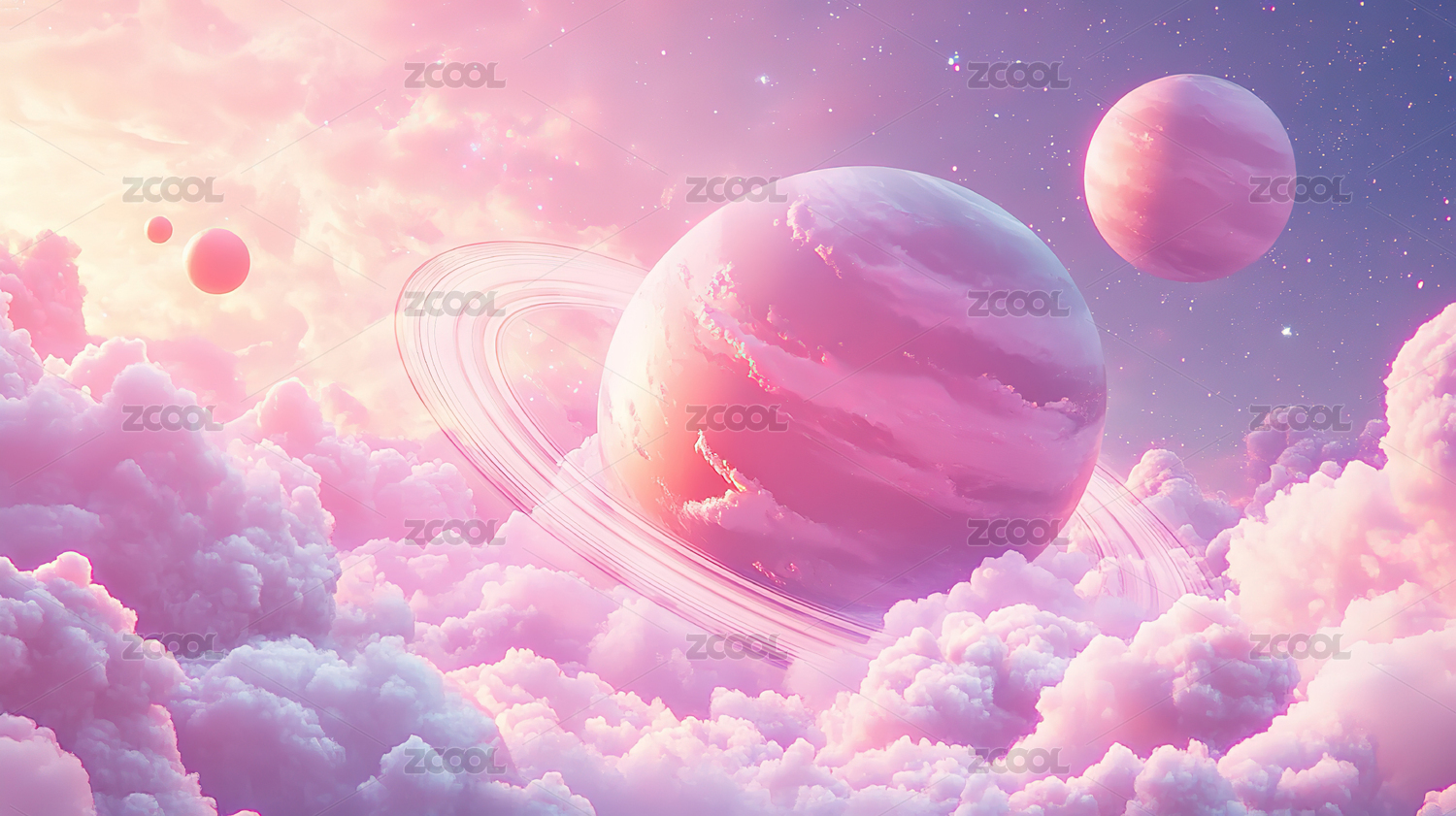 毛毡风格粉色星球宇宙梦幻场景壁纸