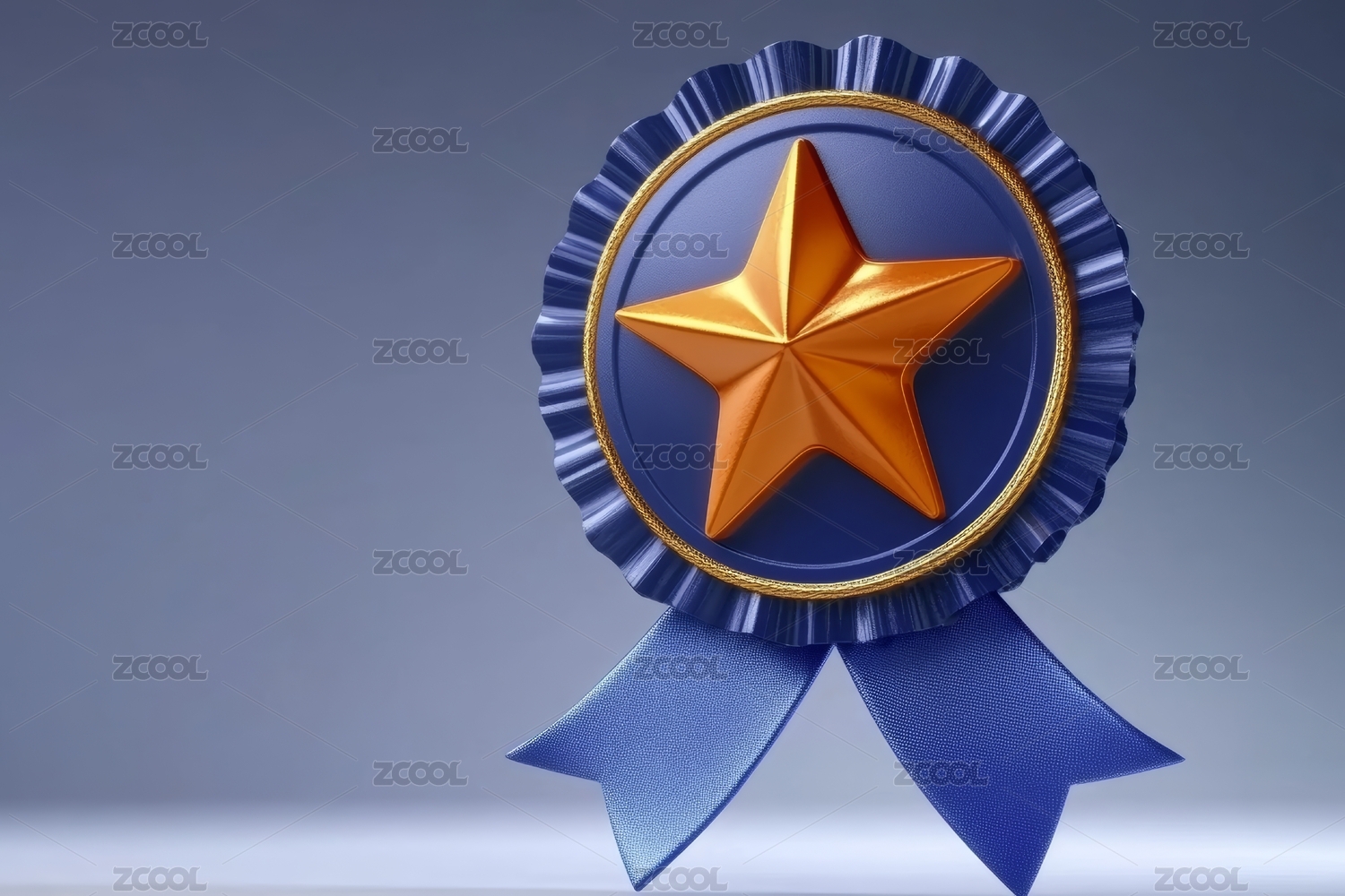 金色徽章配蓝色丝带和闪耀星星