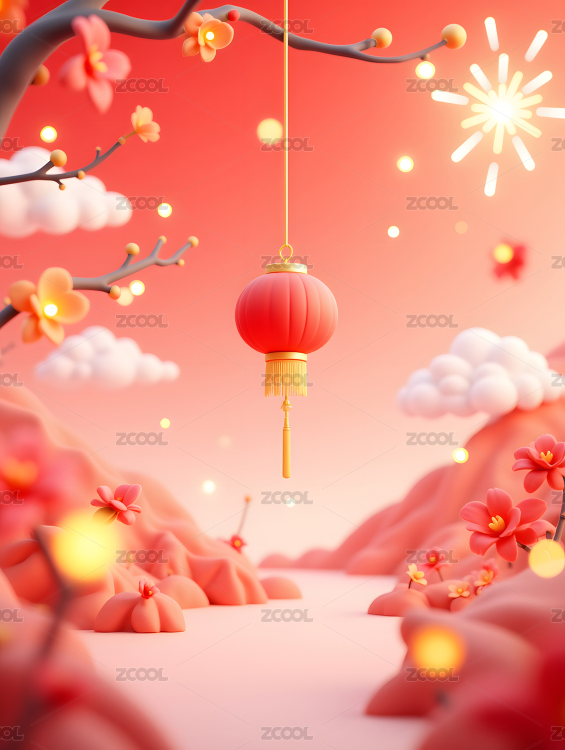 春节新年灯笼节日立体背景
