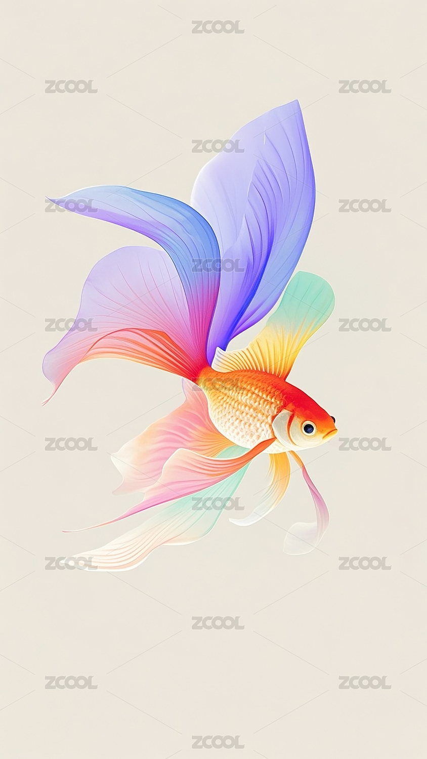 彩色,金鱼,插画,隔离,艳丽,绚丽,霓虹色,薄纱,半透明,渐变色彩