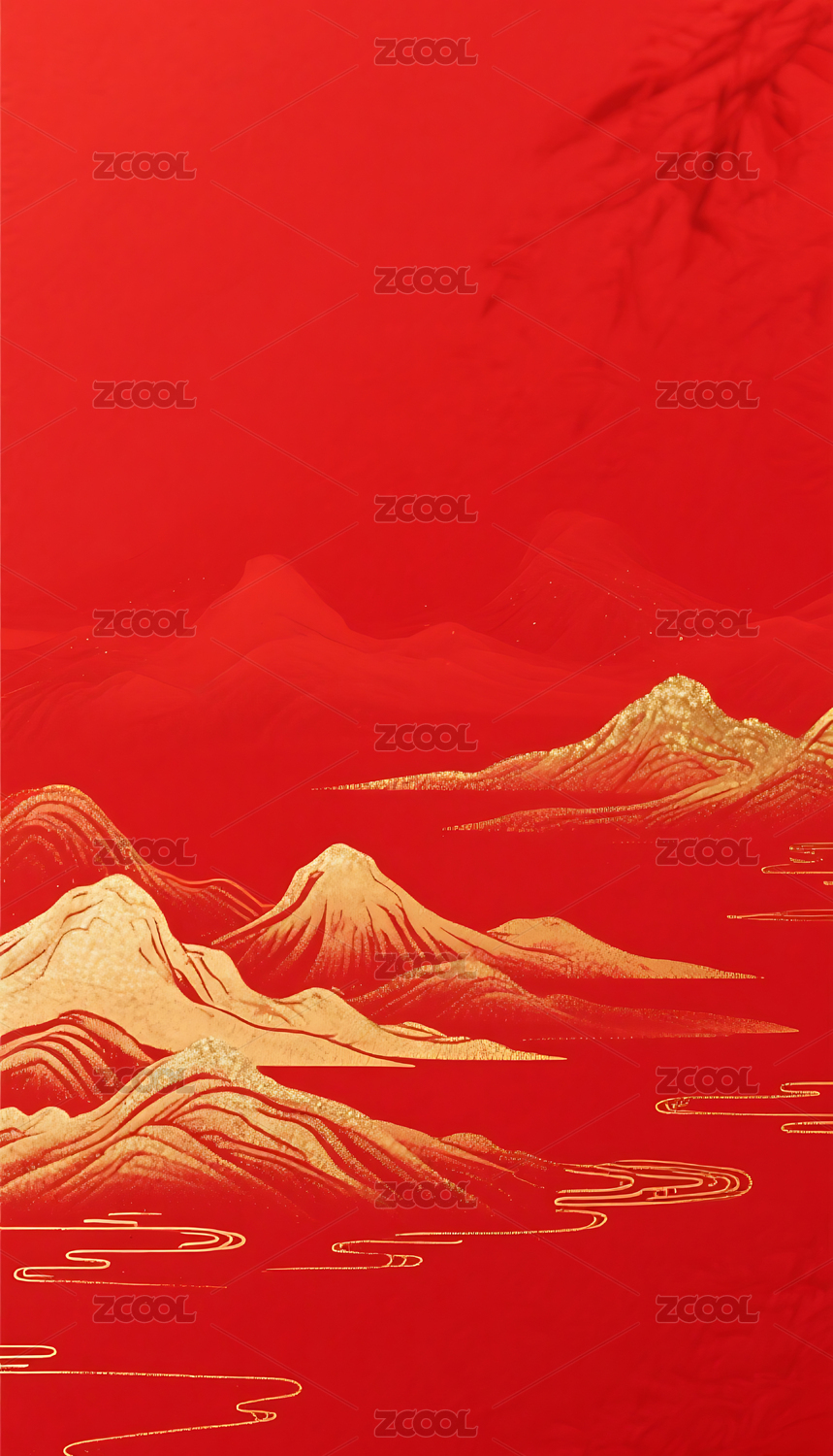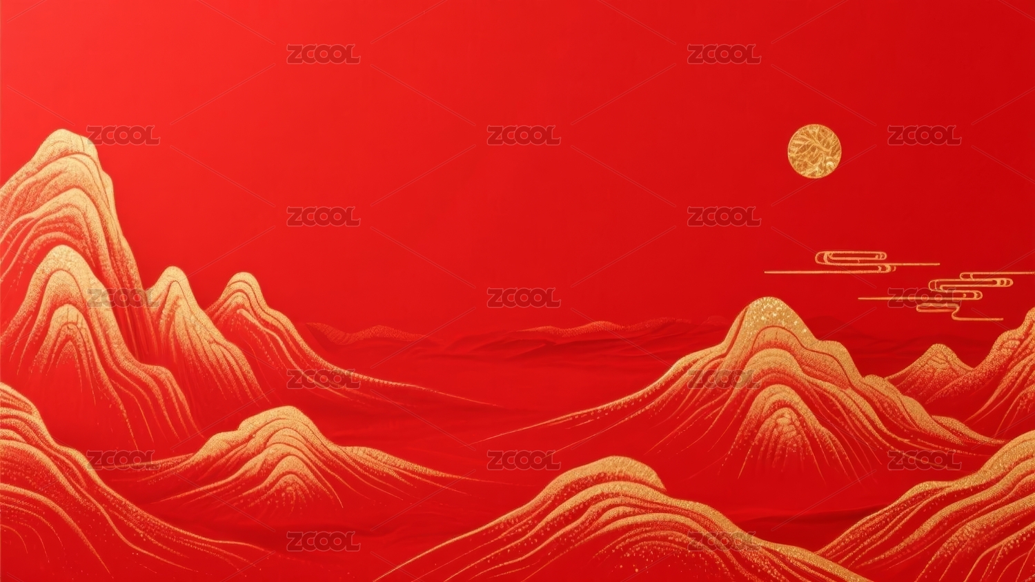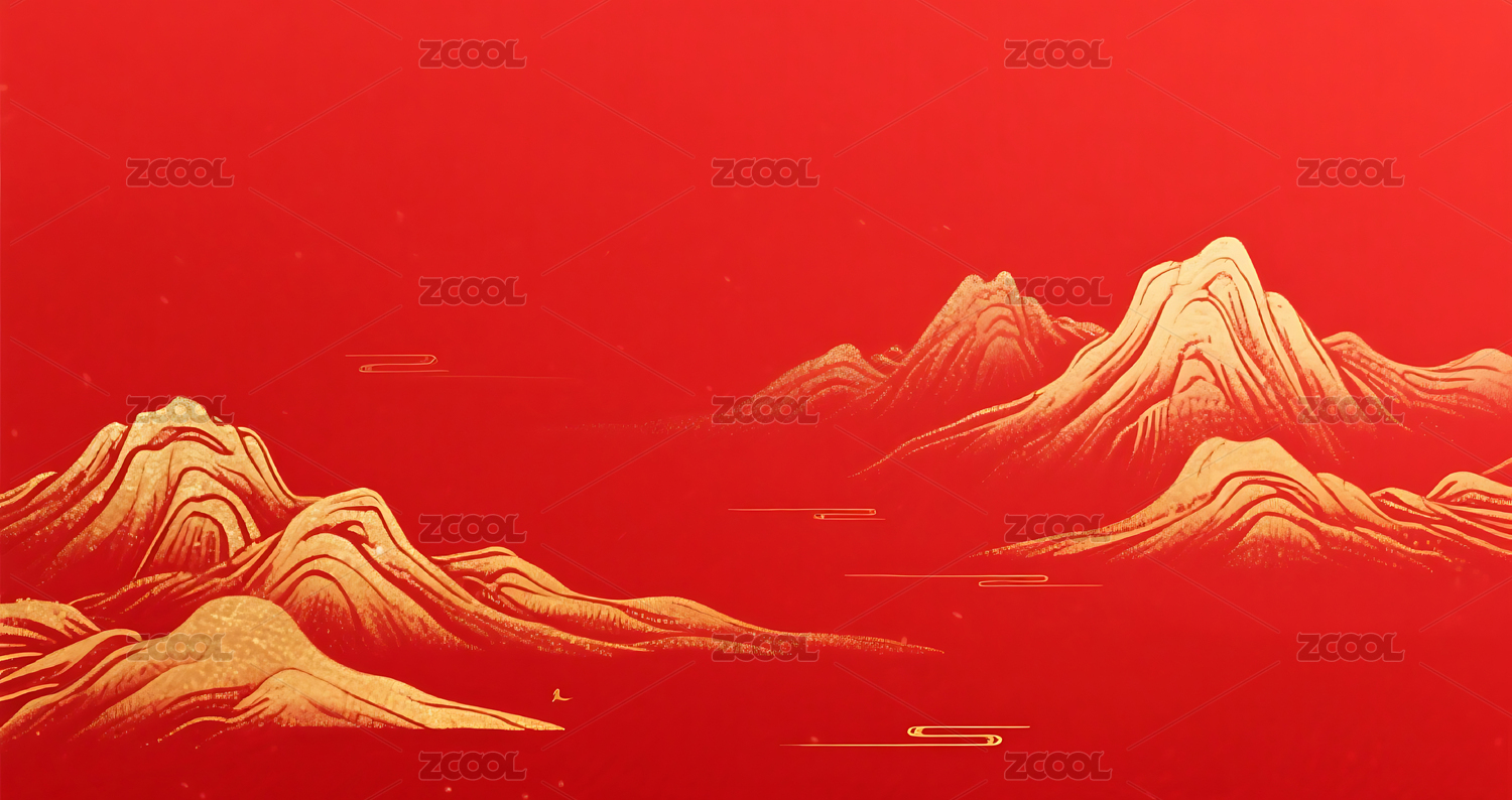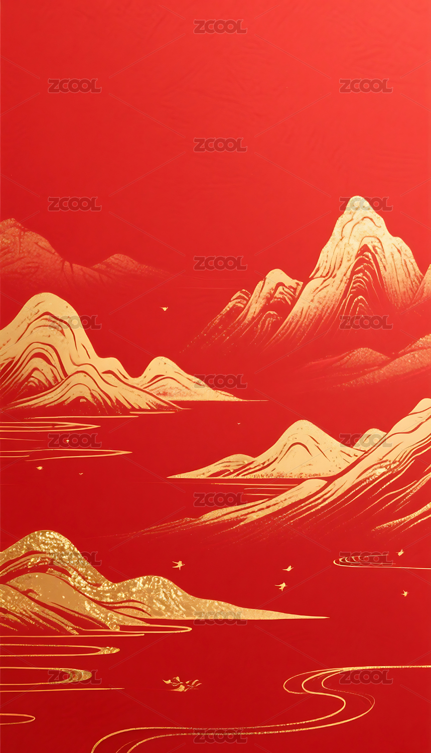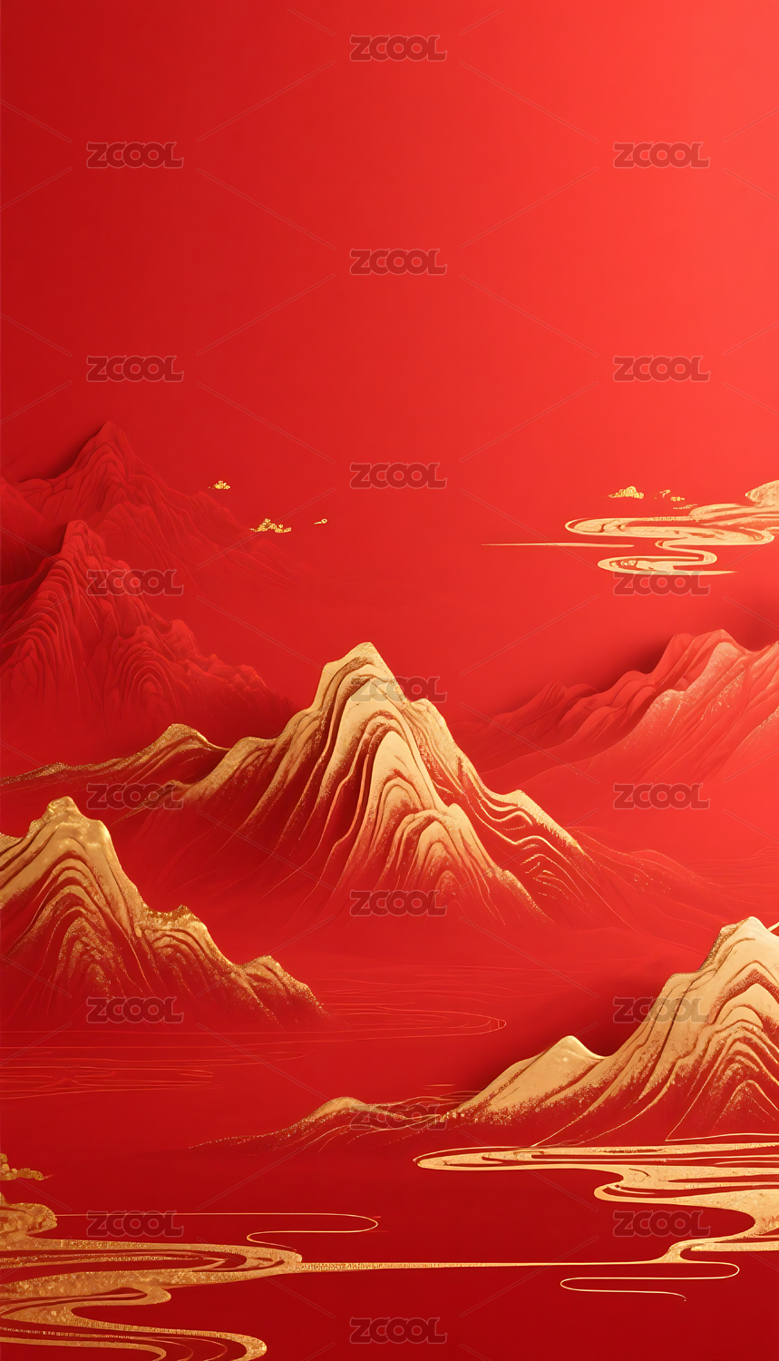 东方,美学,山水,红色,金色,国潮,金河,金山,山河,壮丽