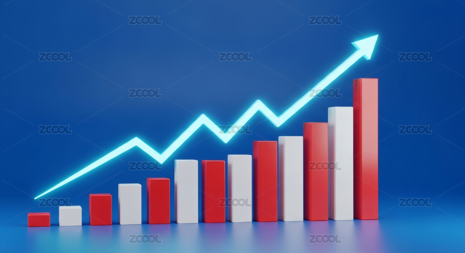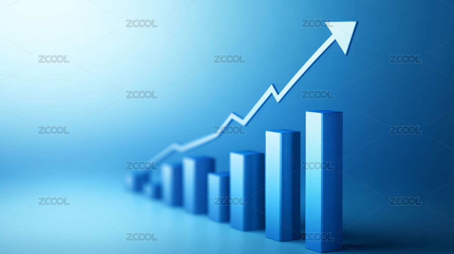 蓝色渐变玻璃质感金融柱状图增长箭头背景