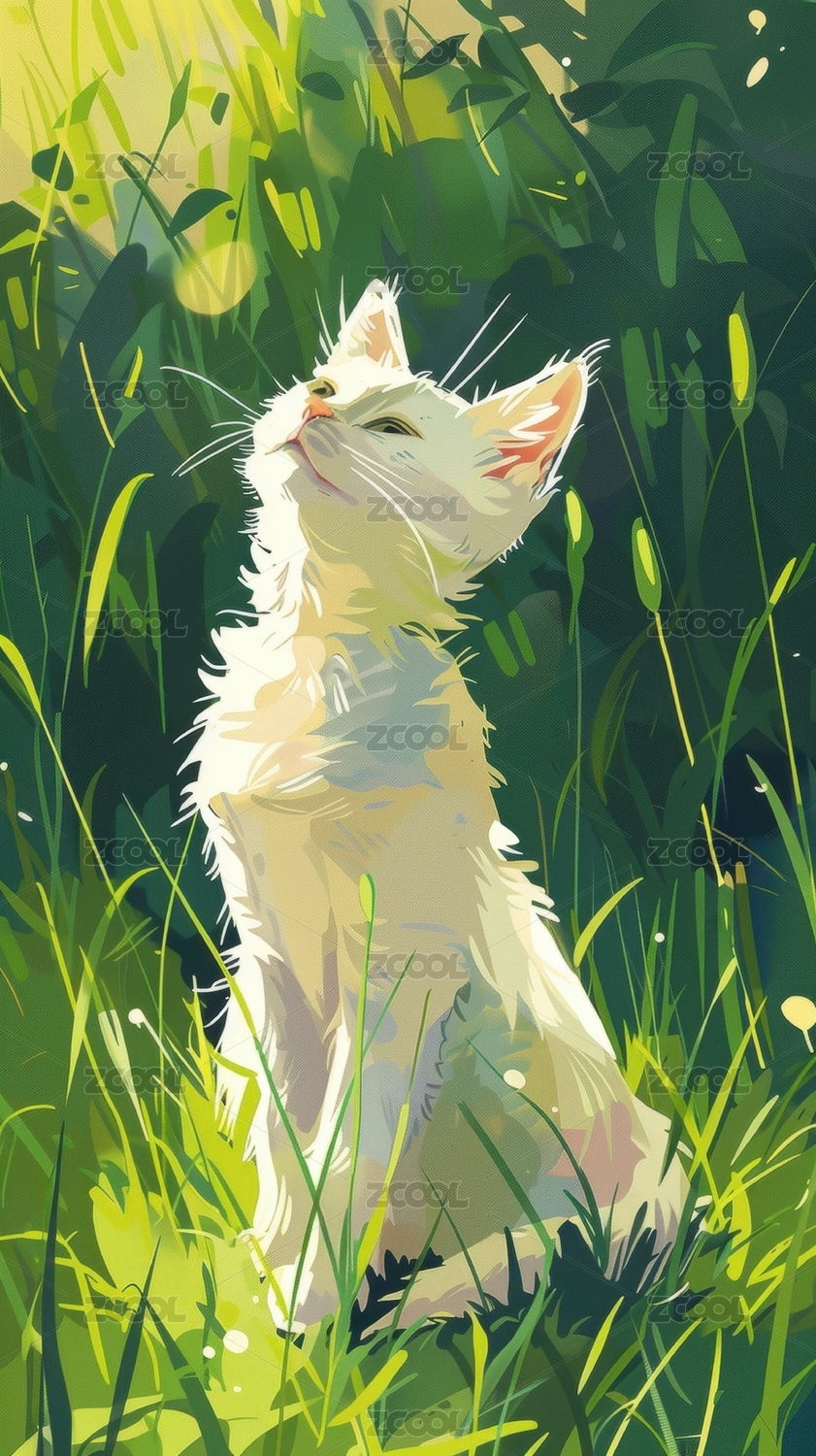 草丛中的白色小猫