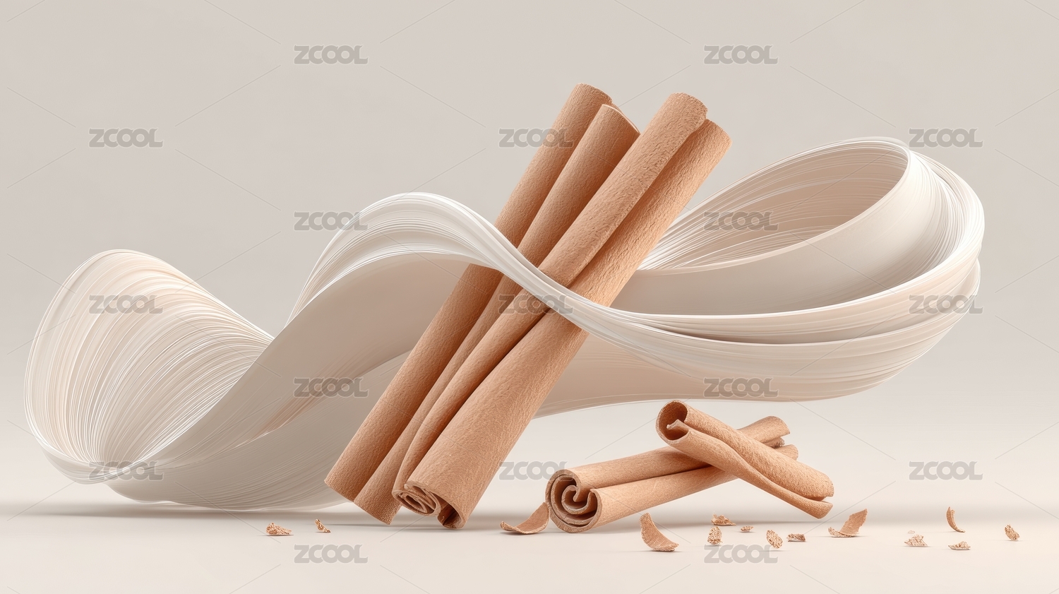 悬浮的肉桂棒与粉末