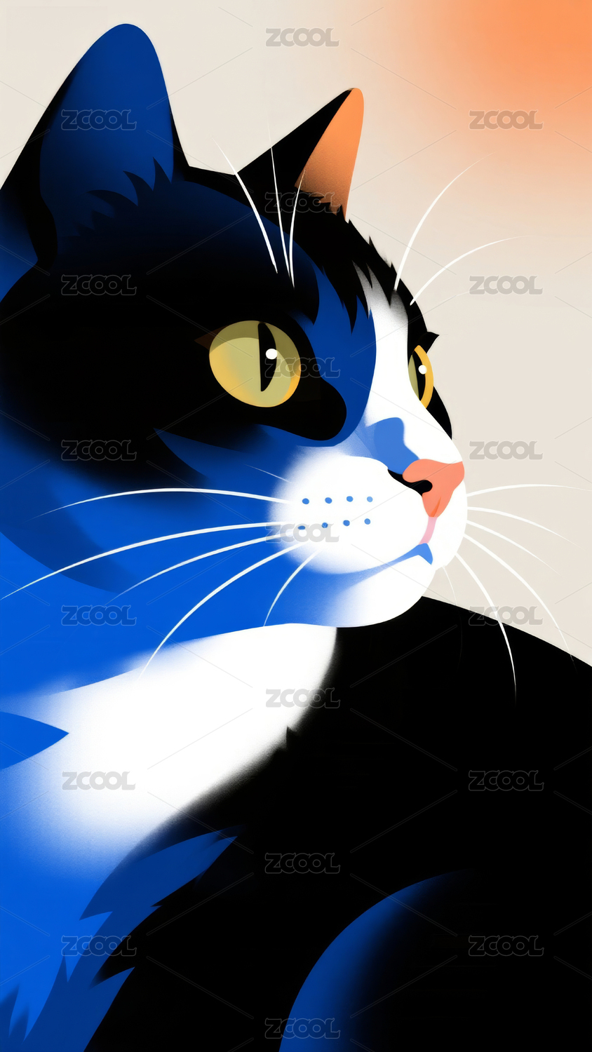 高清,细致,猫,猫咪,插画,极简主义,萌宠,动物,毛茸茸,动物特写