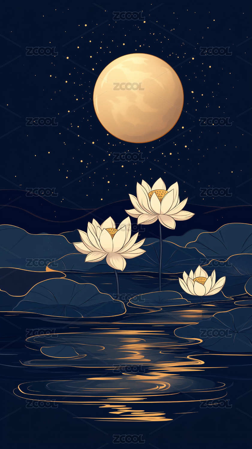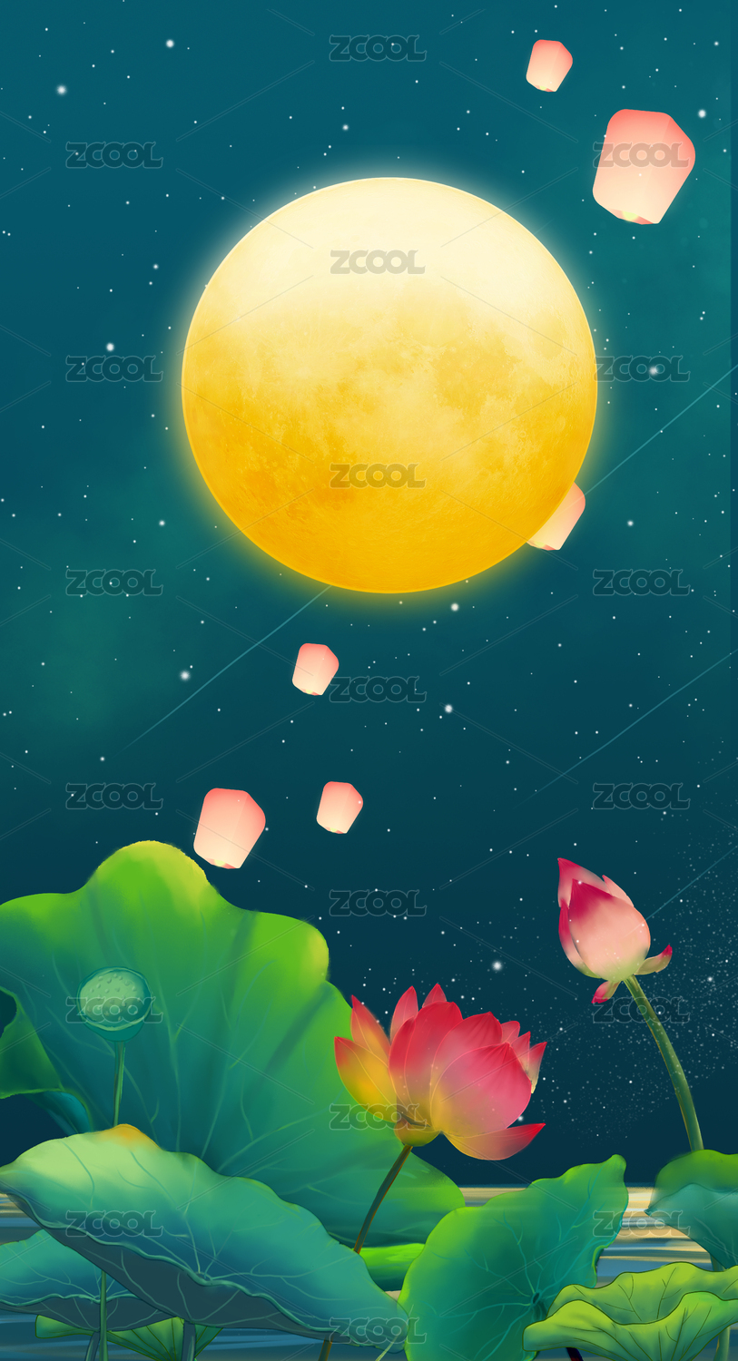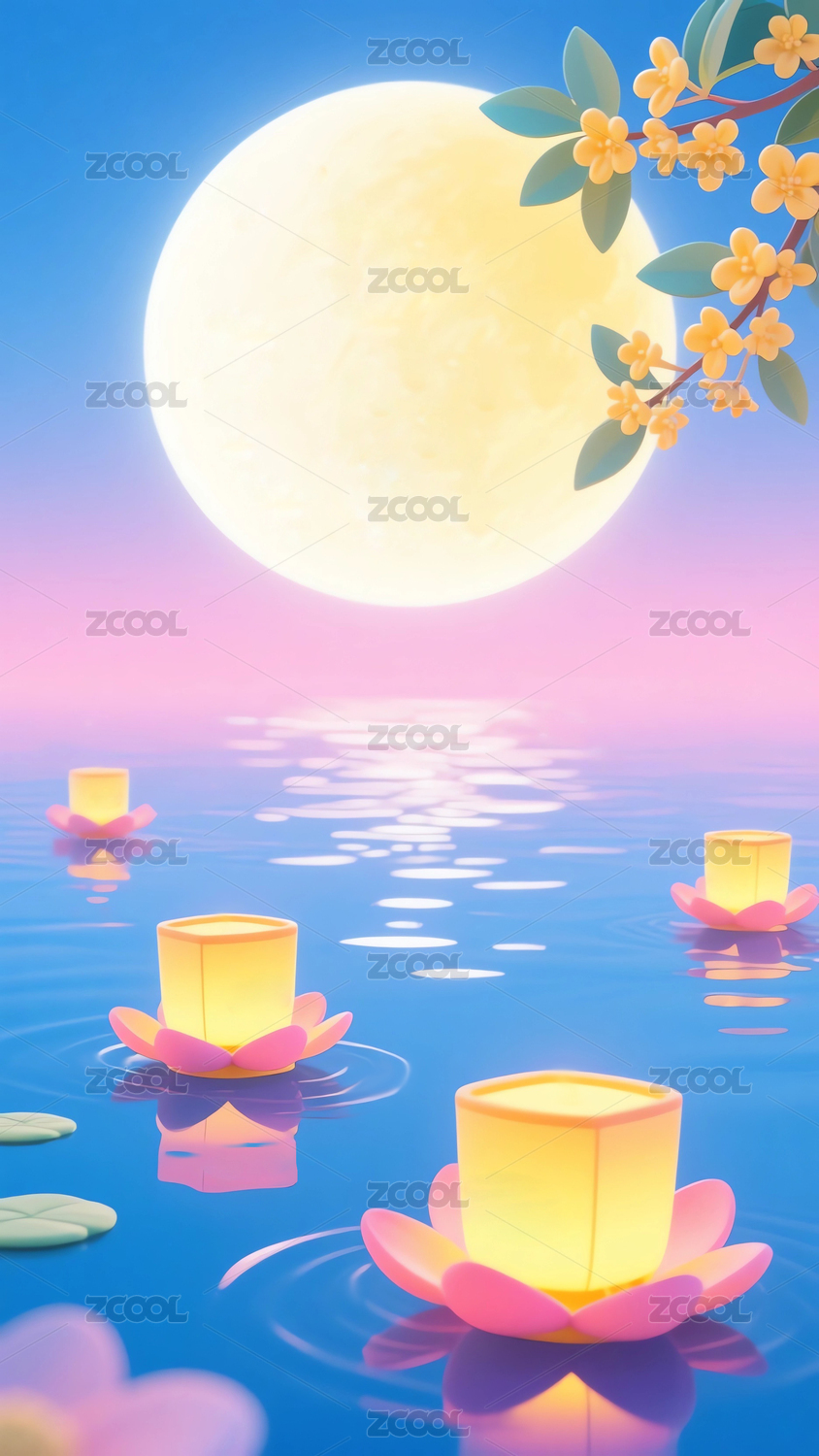 竖构图,三维,3D,背景,插画,天空,夜晚,月亮,满月,自然